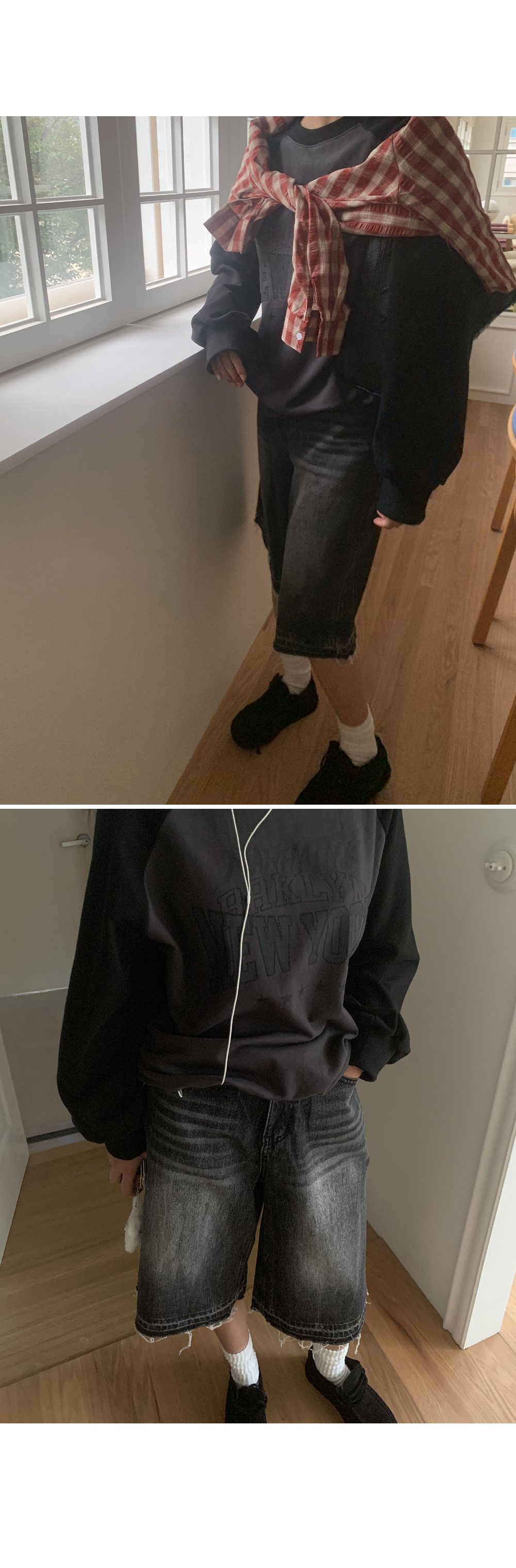 “골반은 평균이며 엉덩이가 작고 하의는 S사이즈를 입어요. 다리가 긴 편이라서 짧 은 기장감의 하의는 M사이즈도 입어요. 상의는 어깨가 있는 편이고 가슴사이즈는75C입니다.”