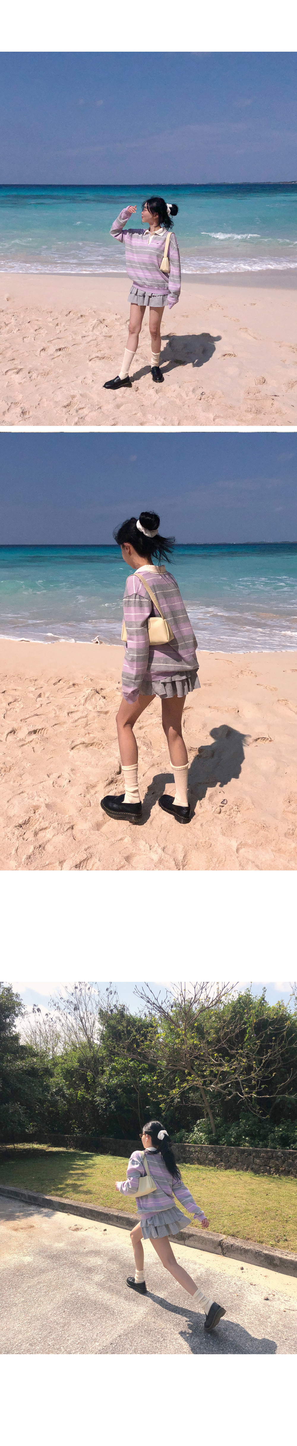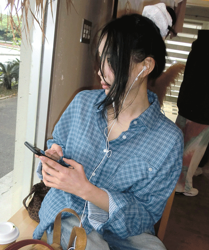 “골반은 평균이며 엉덩이가 작고 하의는 S사이즈를 입어요. 다리가 긴 편이라서 짧 은 기장감의 하의는 M사이즈도 입어요. 상의는 어깨가 있는 편이고 가슴사이즈는75C입니다.”