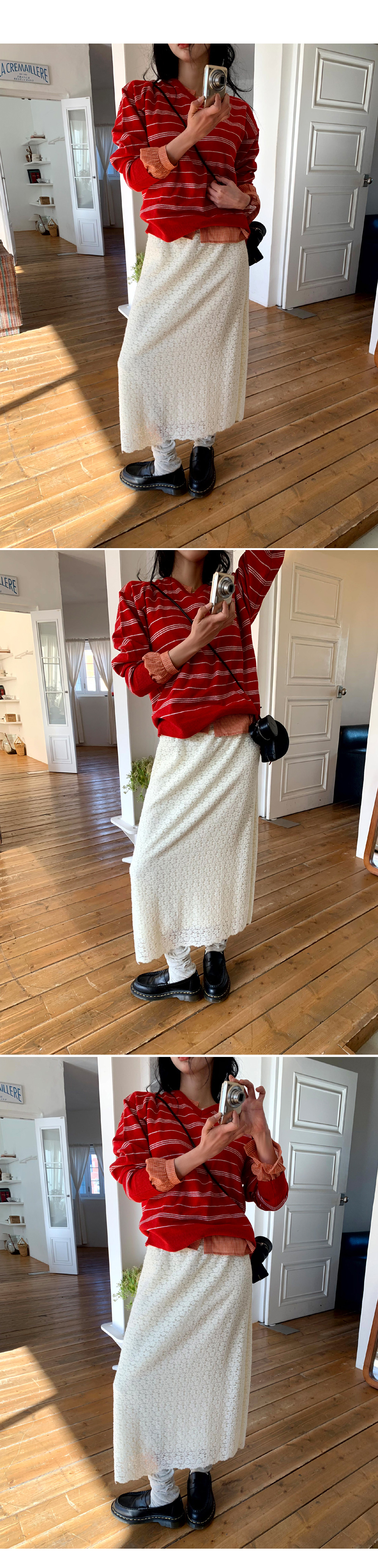 # 플라워 레이스 밴딩 롱스커트