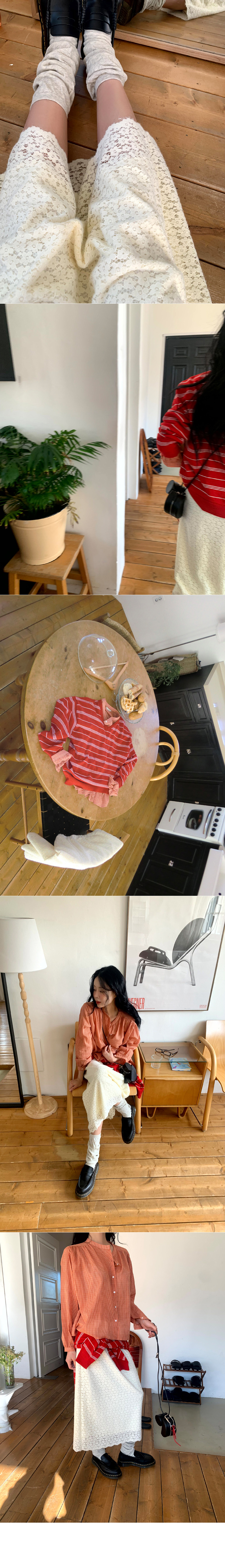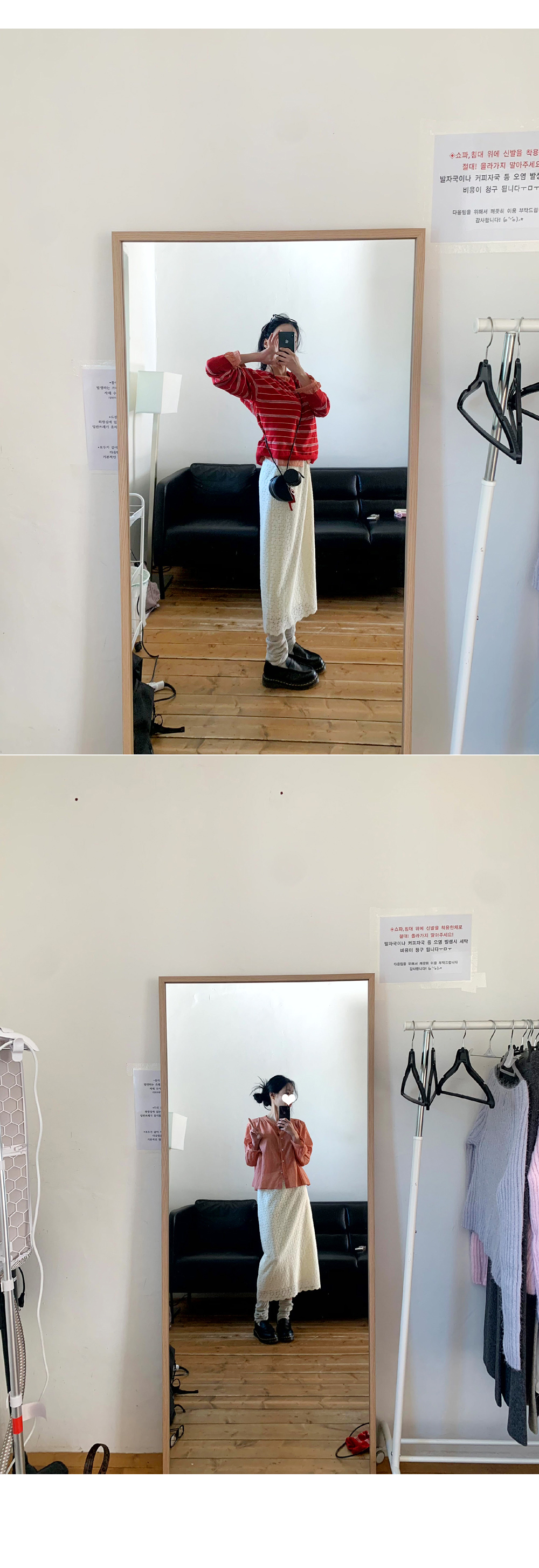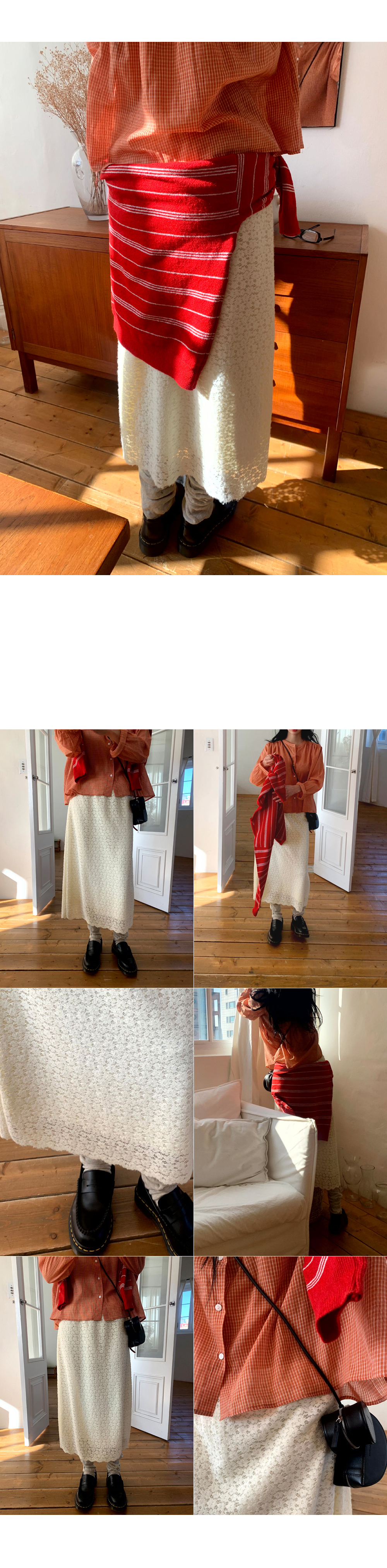 (기모안감)플라워 패턴 레이스로 다양한 룩에 활용하기 좋은 러블리한 밴딩 롱스커트