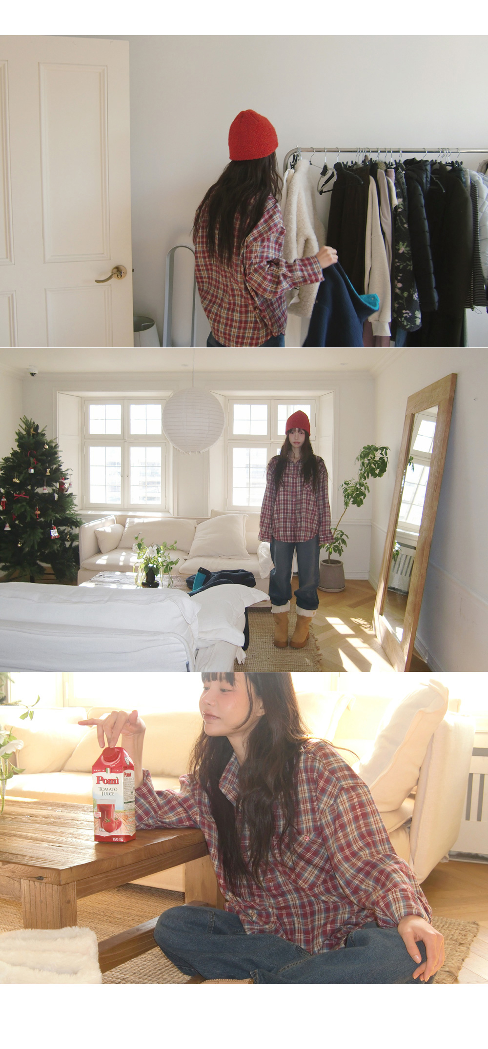 “골반은 평균이며 엉덩이가 작고 하의는 S사이즈를 입어요. 다리가 긴 편이라서 짧 은 기장감의 하의는 M사이즈도 입어요. 상의는 어깨가 있는 편이고 가슴사이즈는75C입니다.”
