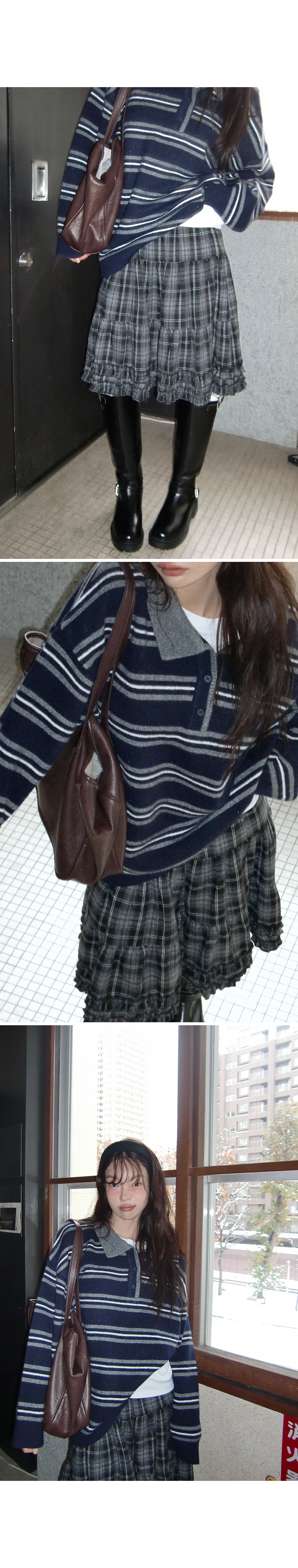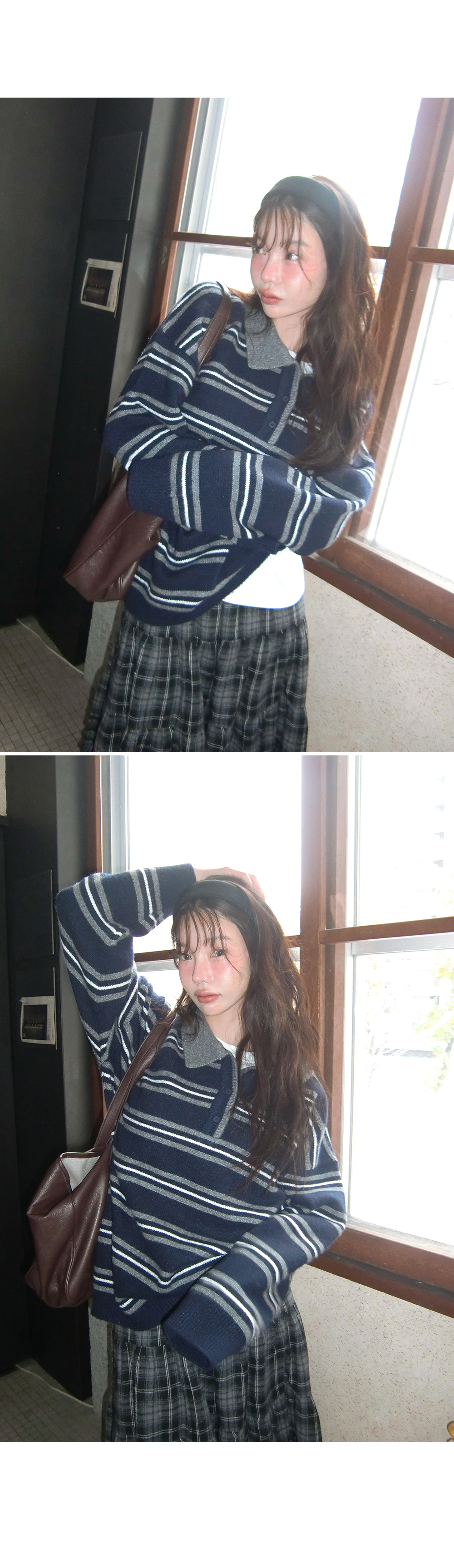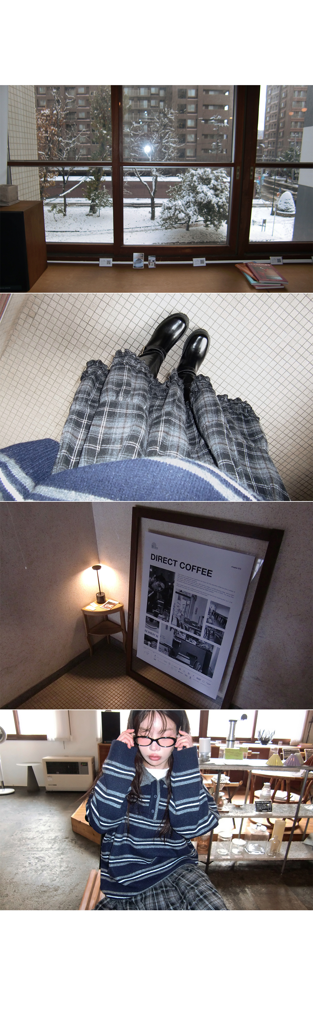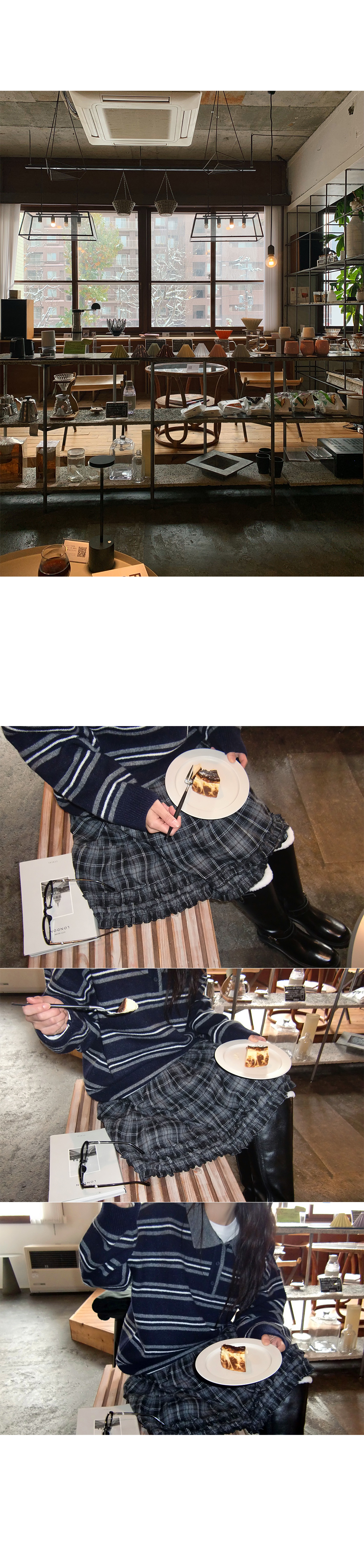 “골반은 평균이며 엉덩이가 작고 하의는 S사이즈를 입어요. 다리가 긴 편이라서 짧 은 기장감의 하의는 M사이즈도 입어요. 상의는 어깨가 있는 편이고 가슴사이즈는75C입니다.”