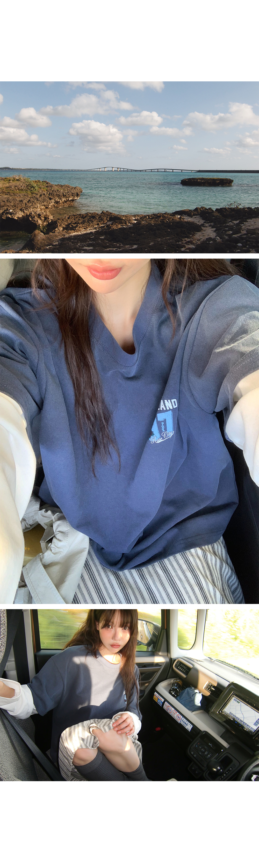 “골반은 평균이며 엉덩이가 작고 하의는 S사이즈를 입어요. 다리가 긴 편이라서 짧 은 기장감의 하의는 M사이즈도 입어요. 상의는 어깨가 있는 편이고 가슴사이즈는75C입니다.”