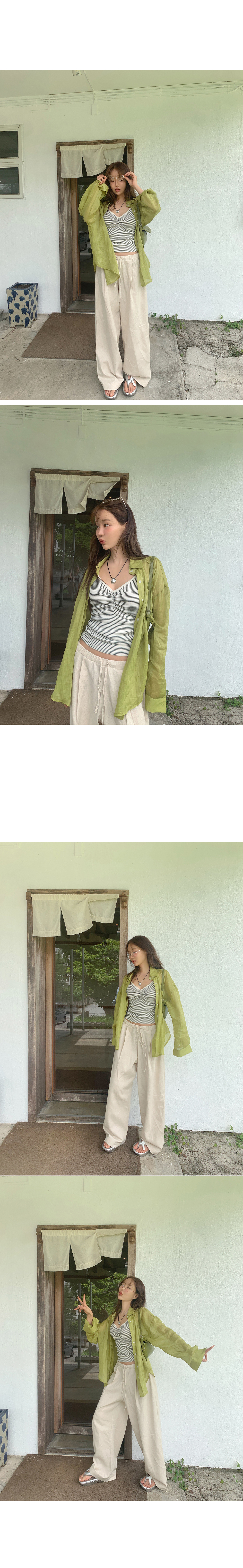 “골반은 평균이며 엉덩이가 작고 하의는 S사이즈를 입어요. 다리가 긴 편이라서 짧 은 기장감의 하의는 M사이즈도 입어요. 상의는 어깨가 있는 편이고 가슴사이즈는75C입니다.”