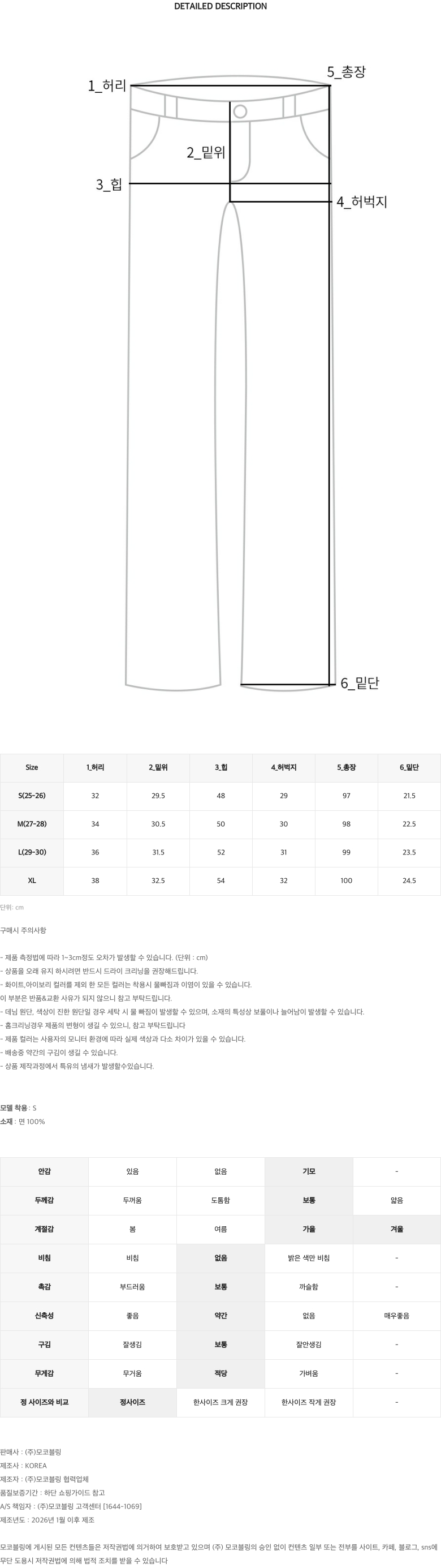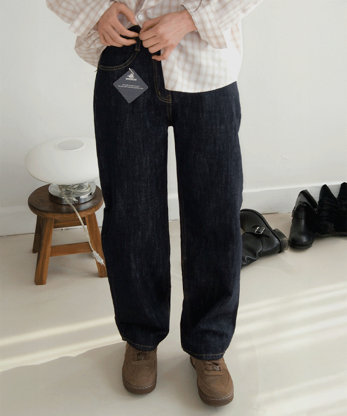 # 딥한 컬러감의 생지 기모 데님팬츠