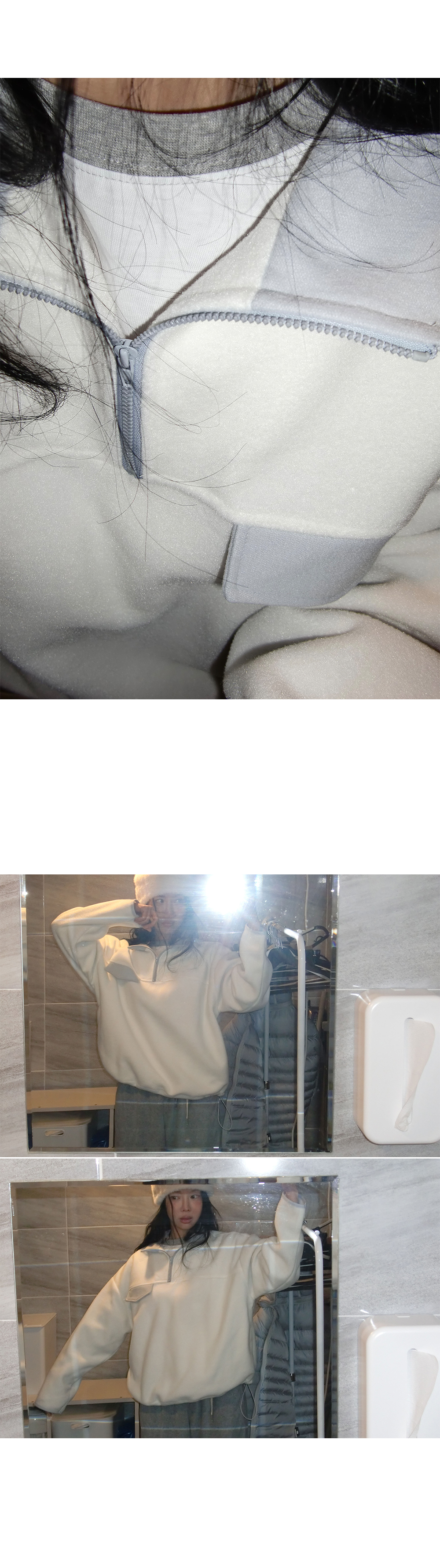 “골반, 엉덩이가 큰 편이지만 하의는 S사이즈를 입어요. 상의는 허리가 긴 편이고 어깨는 평균이며 가슴사이즈는 75C 입니다.”