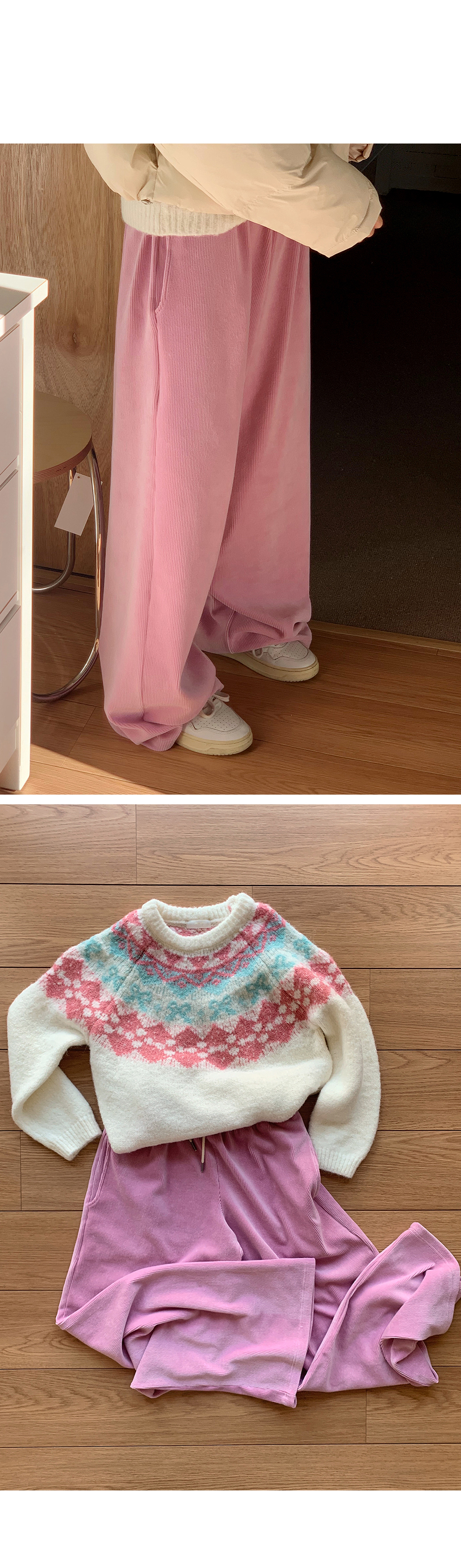 재진행!!데일리 팬츠로 무조건 추천! 포근하고 부드러운 벨로아 코듀로이 소재의 알럽모코 밴딩 와이드 팬츠