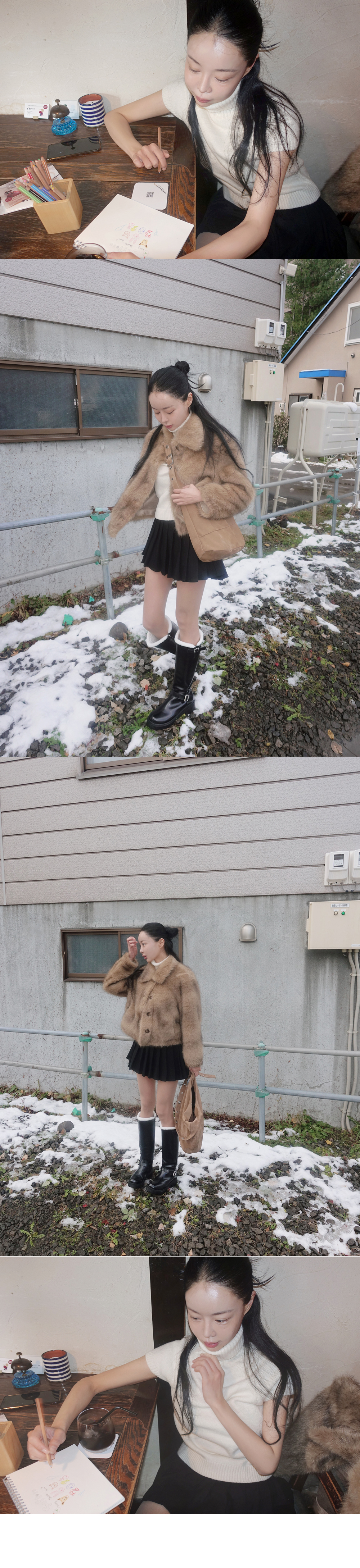 # 이너로 착용하기 좋은 반팔 목폴라 니트