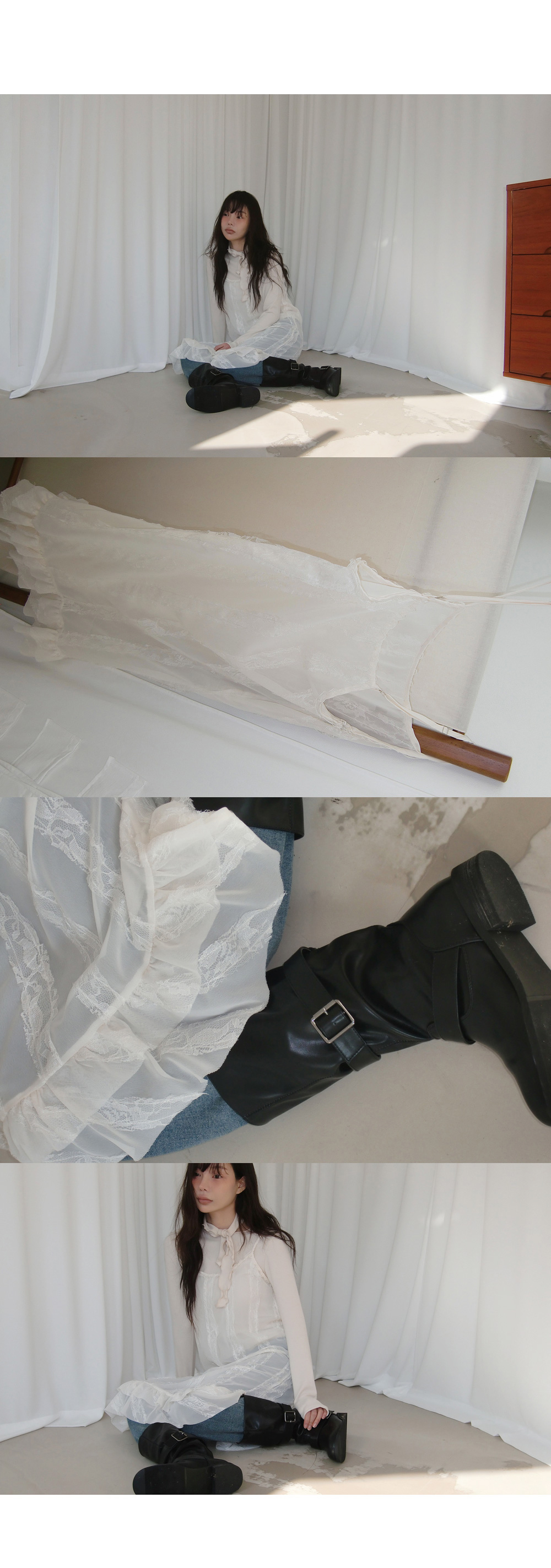 “골반은 평균이며 엉덩이가 작고 하의는 S사이즈를 입어요. 다리가 긴 편이라서 짧 은 기장감의 하의는 M사이즈도 입어요. 상의는 어깨가 있는 편이고 가슴사이즈는75C입니다.”