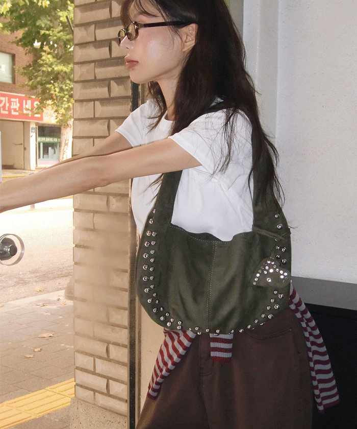 스터드 라인으로 포인트를 준 스웨이드 숄더백