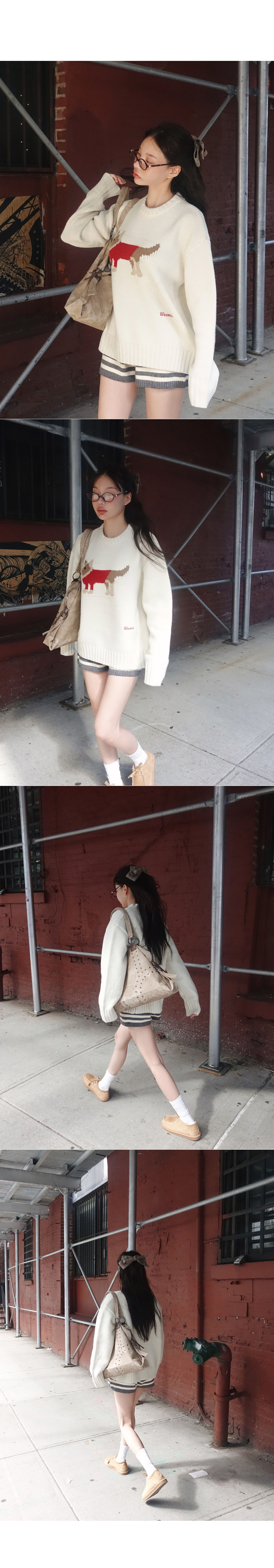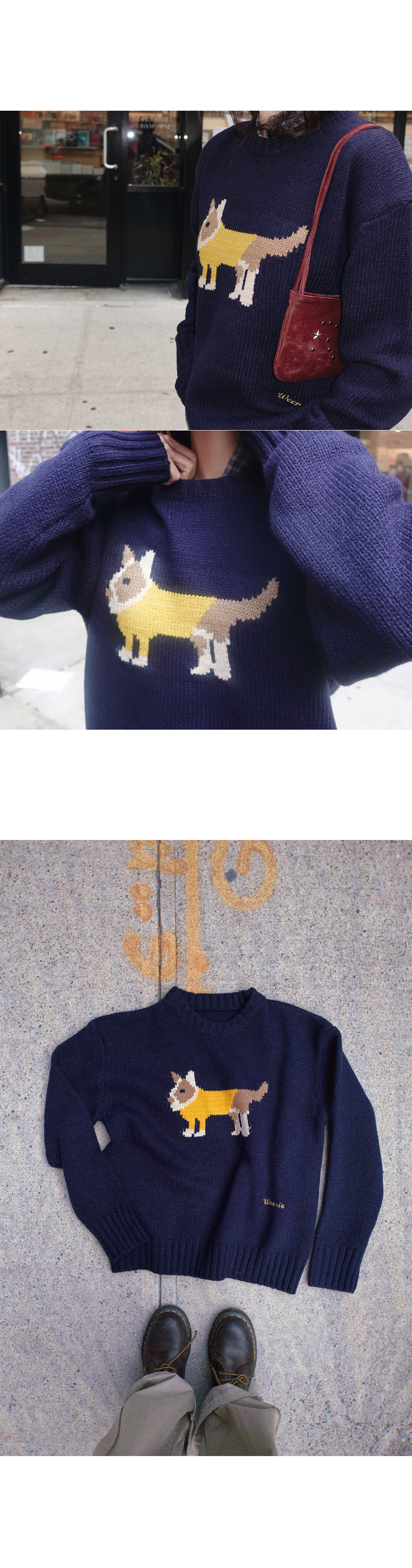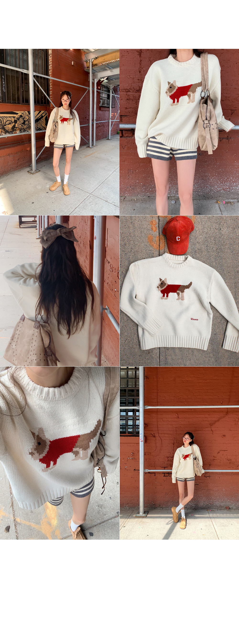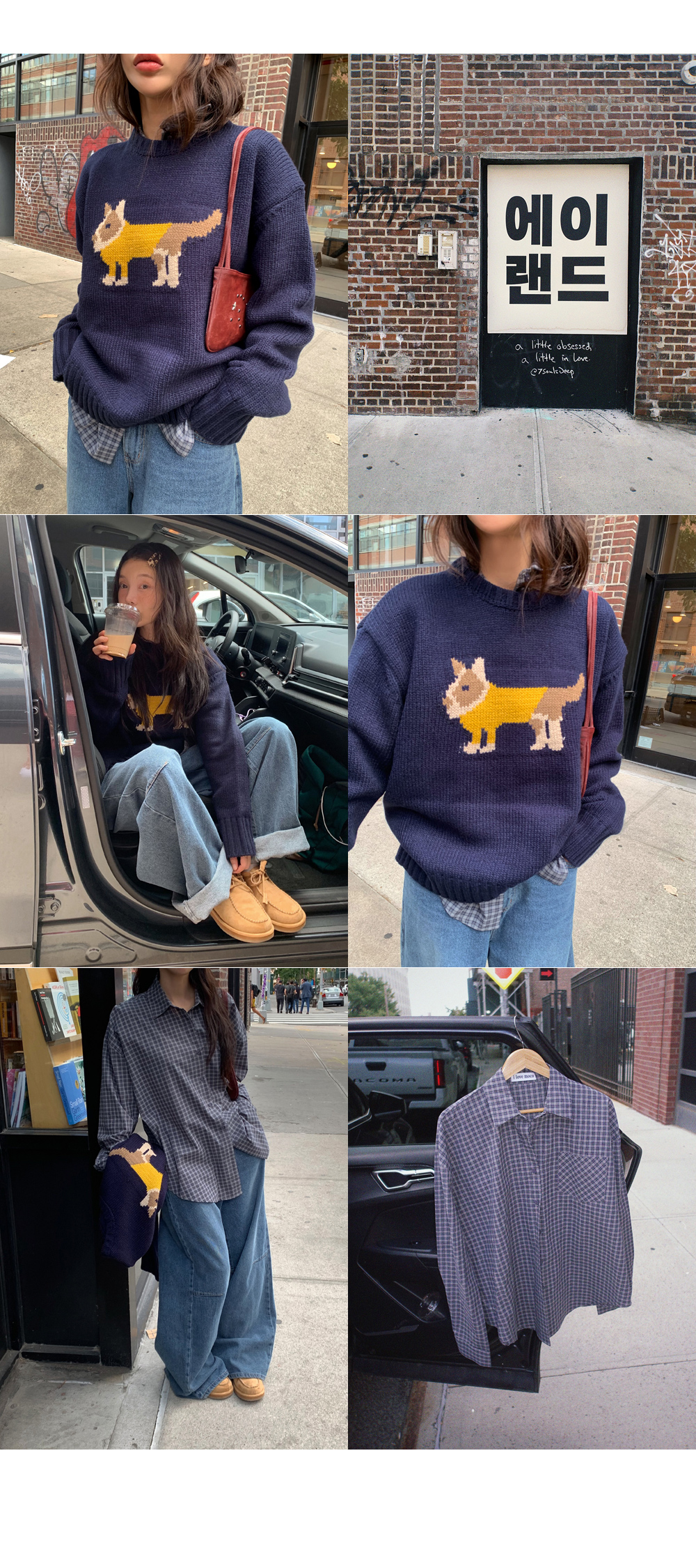 귀여운 강아지 자가드 패턴의 오버핏 니트. 도톰하고 탄탄하게 짜여진 니트라서 지금부터 겨울까지 귀엽게 매치가능해요!