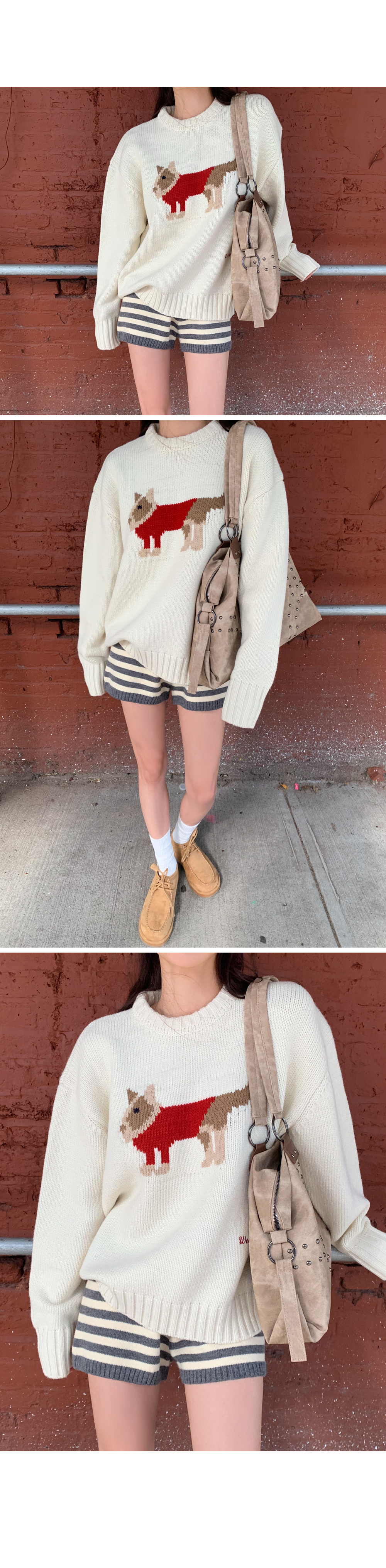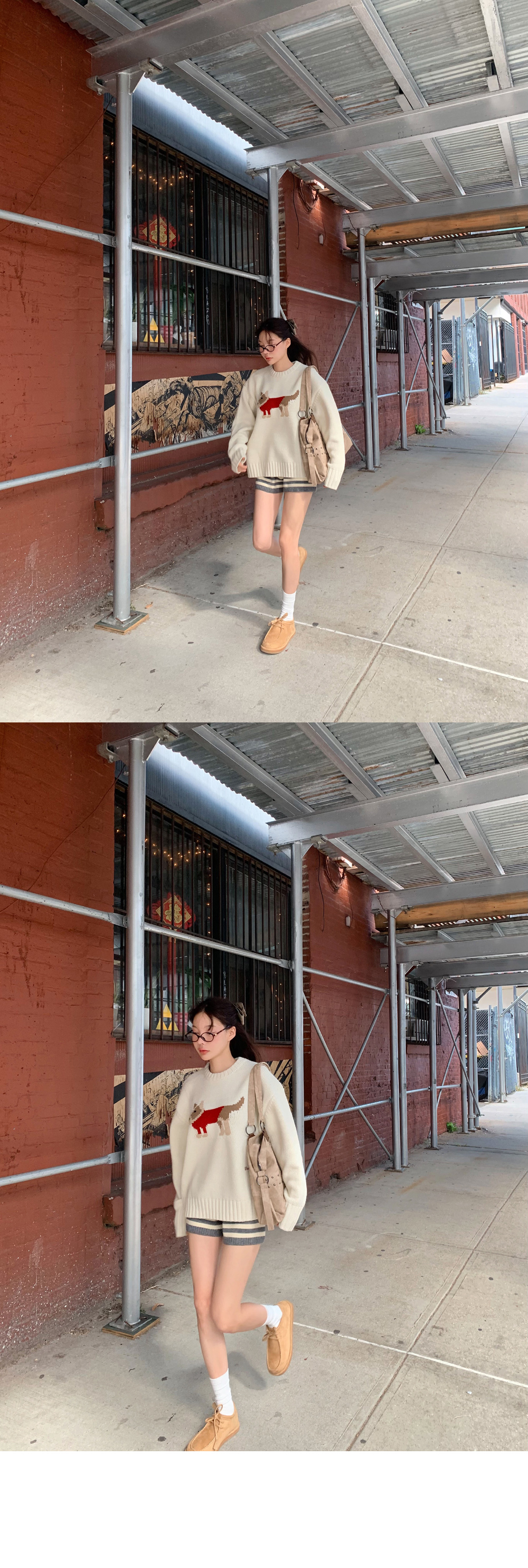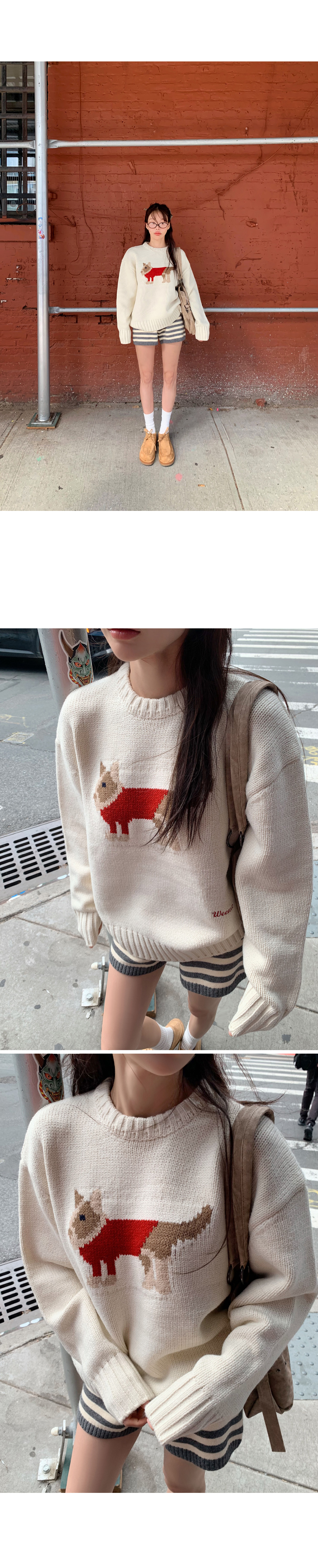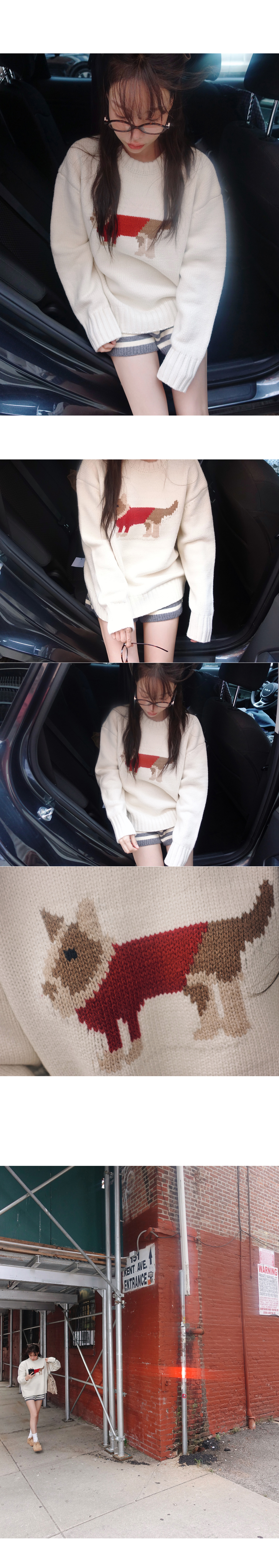 귀여운 강아지 자가드 패턴의 오버핏 니트. 도톰하고 탄탄하게 짜여진 니트라서 지금부터 겨울까지 귀엽게 매치가능해요!