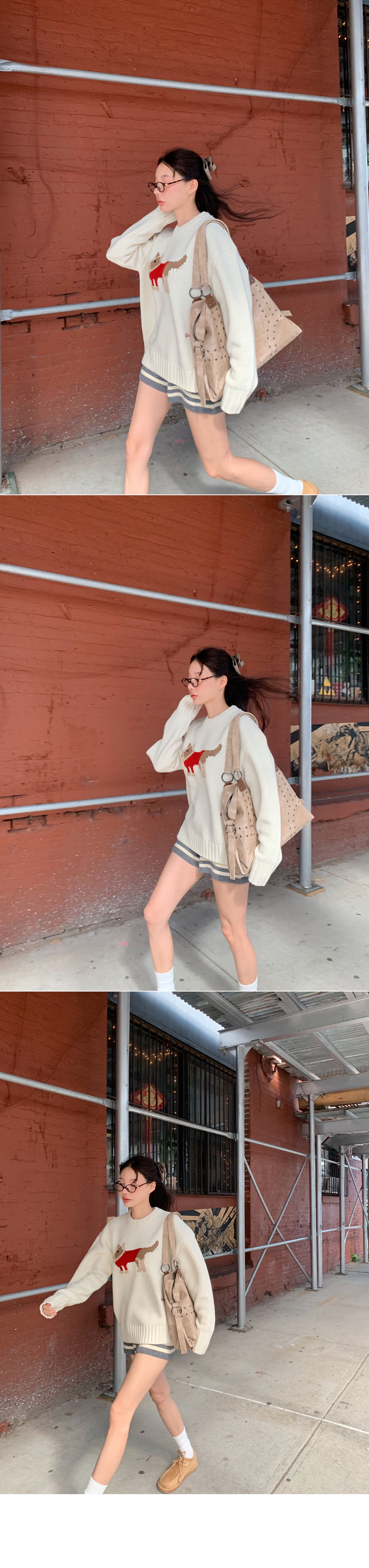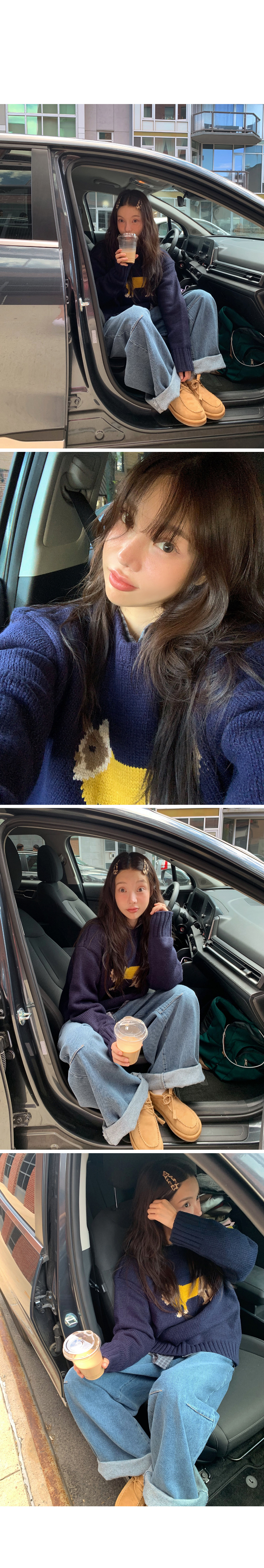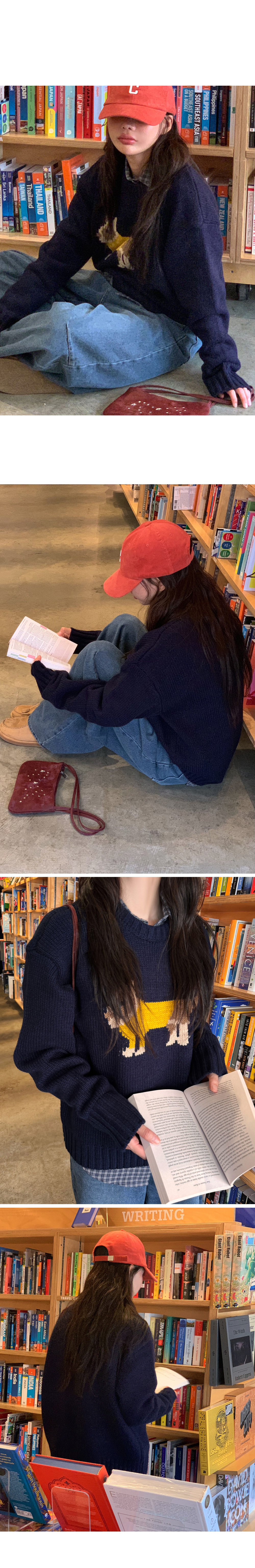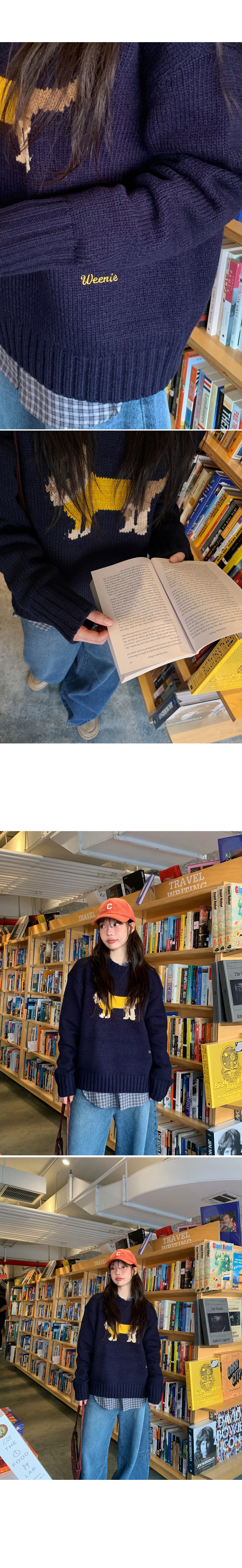 귀여운 강아지 자가드 패턴의 오버핏 니트. 도톰하고 탄탄하게 짜여진 니트라서 지금부터 겨울까지 귀엽게 매치가능해요!