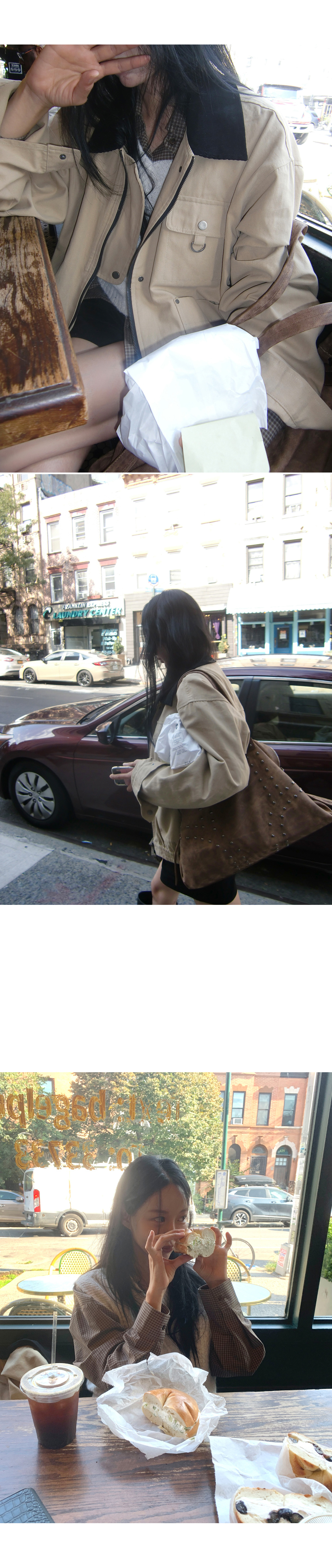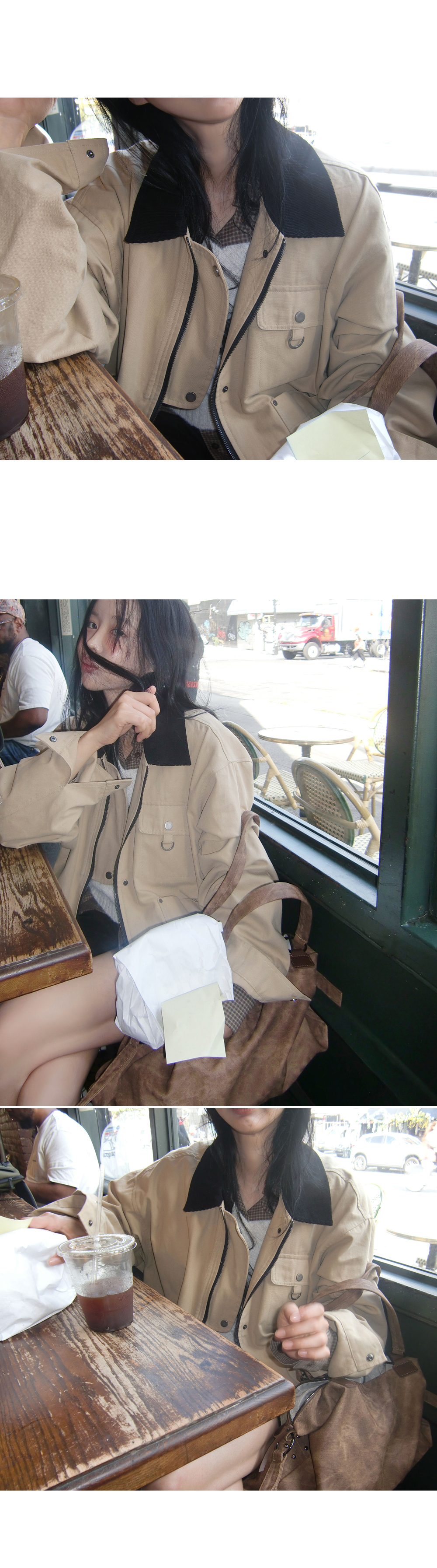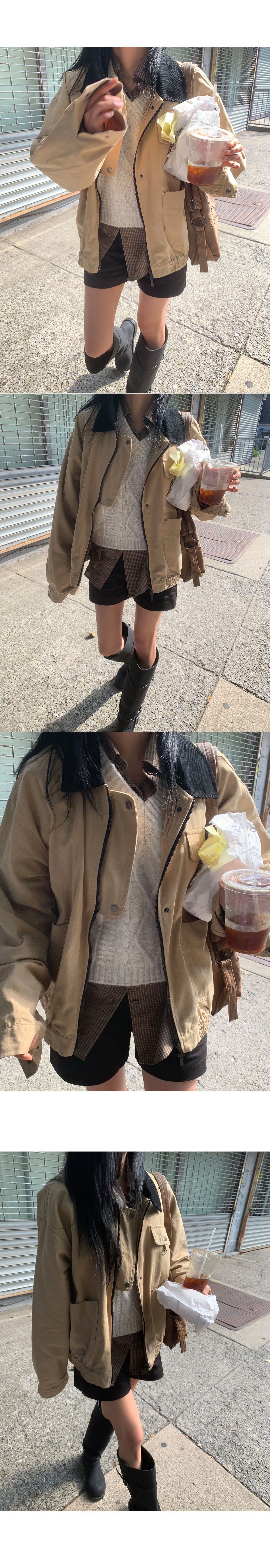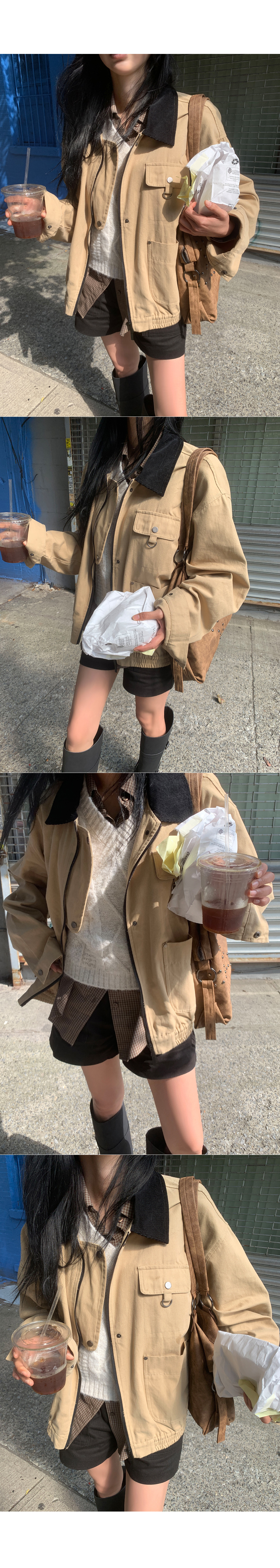 가을에 아우터로 착용하기 좋은 배색 카라 디테일의 오버핏 야상 워크자켓