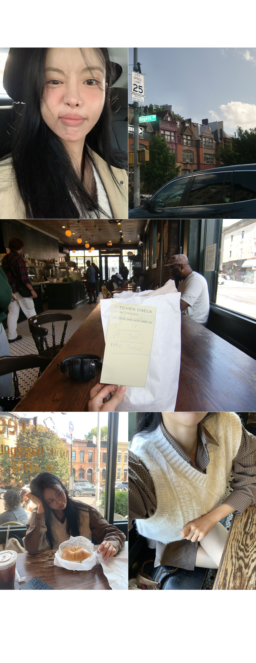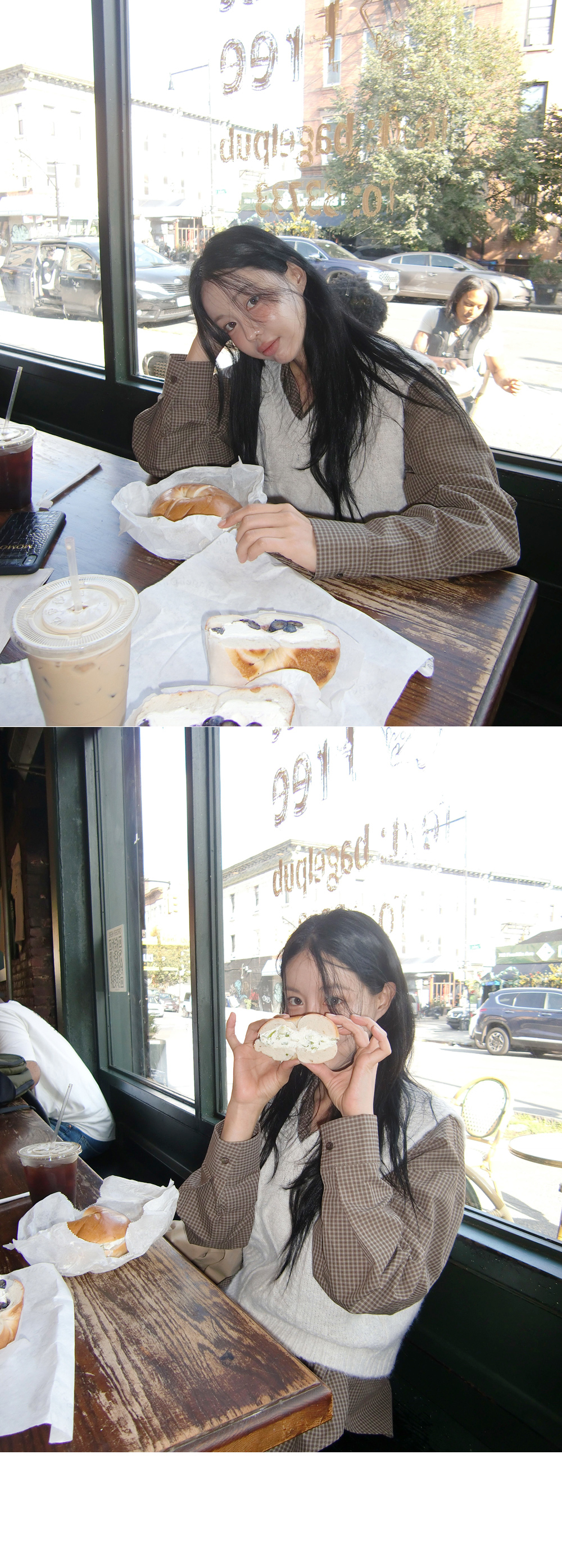 “골반은 평균이며 엉덩이가 작고 하의는 S사이즈를 입어요. 다리가 긴 편이라서 짧 은 기장감의 하의는 M사이즈도 입어요. 상의는 어깨가 있는 편이고 가슴사이즈는75C입니다.”