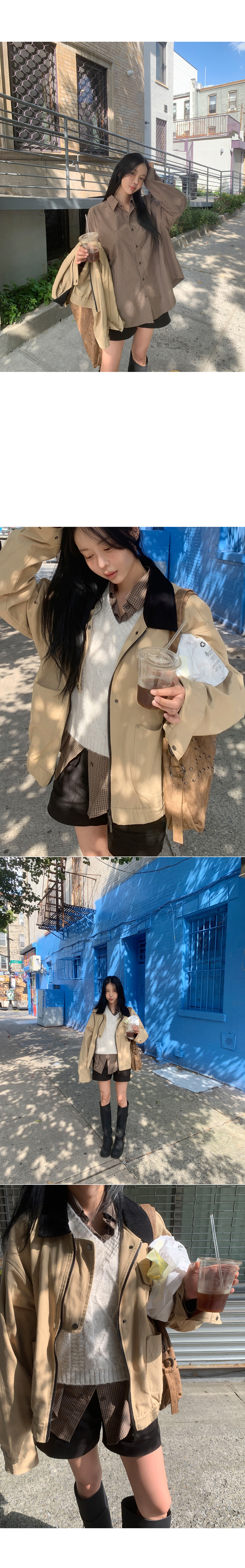 # 배색 카라 디테 일의 오버핏 야상 자켓