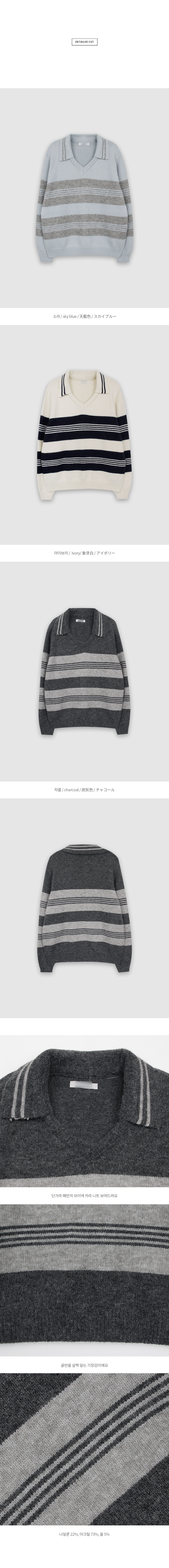 단가라 배색 패턴 포인트의 브이넥 카라 니트