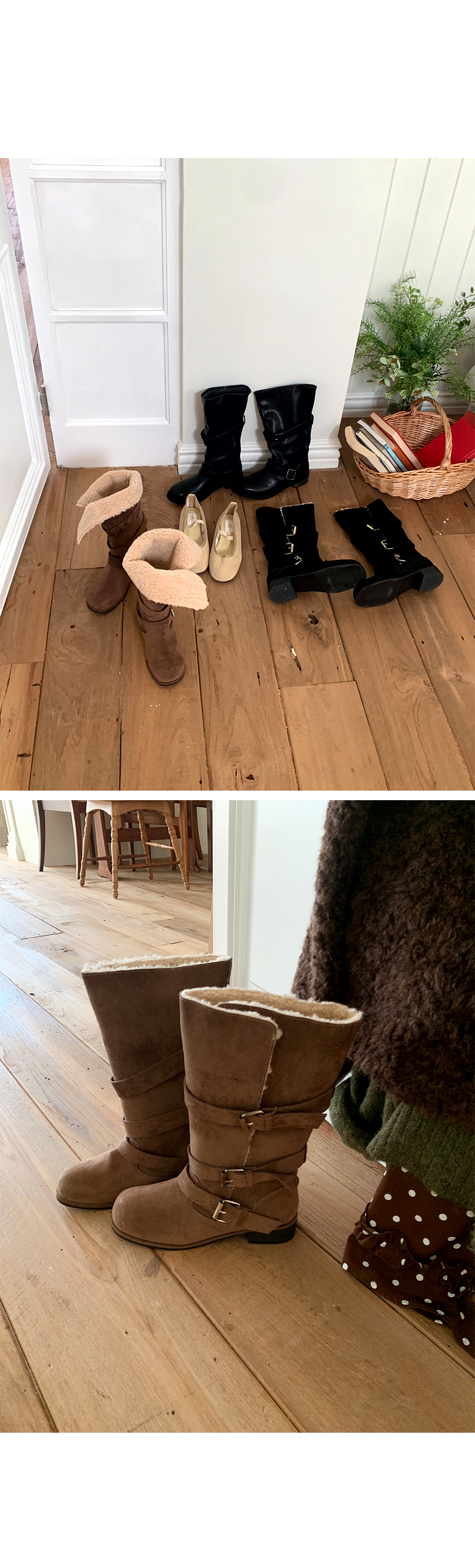 털안감으로 따뜻하고 투웨이로 착용하기 좋은 버클 롱부츠