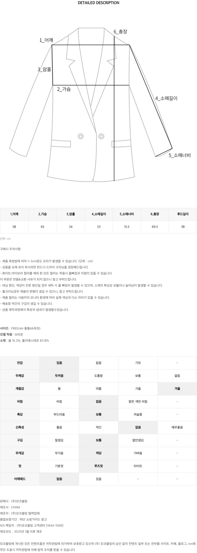하프기장으로 보온성을 더하고 퍼 안감으로 포근하게 착용되는 후드 무스탕:)
