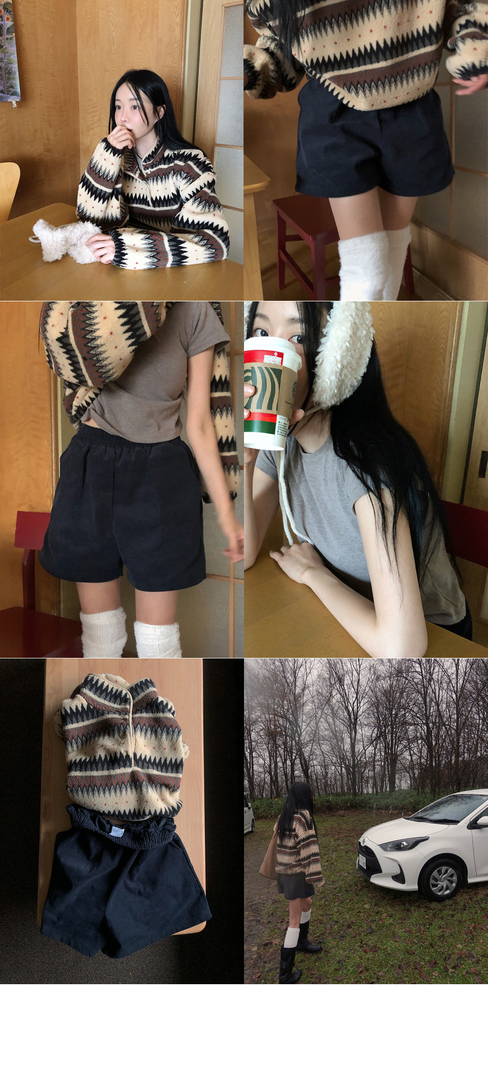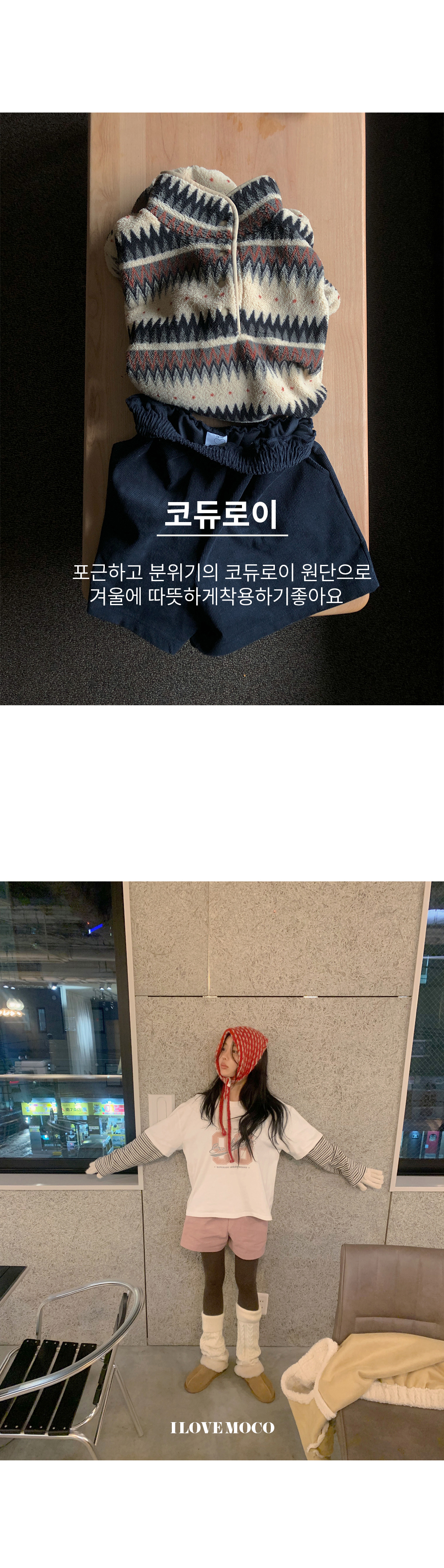 베이직한 디자인의 알럽모코 코듀로이 밴딩 반바지