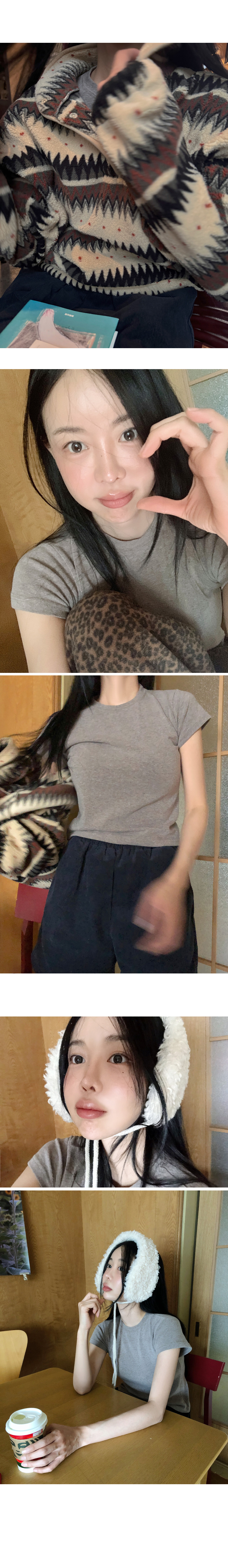 “골반은 평균이며 엉덩이가 작고 하의는 S사이즈를 입어요. 다리가 긴 편이라서 짧 은 기장감의 하의는 M사이즈도 입어요. 상의는 어깨가 있는 편이고 가슴사이즈는75C입니다.”