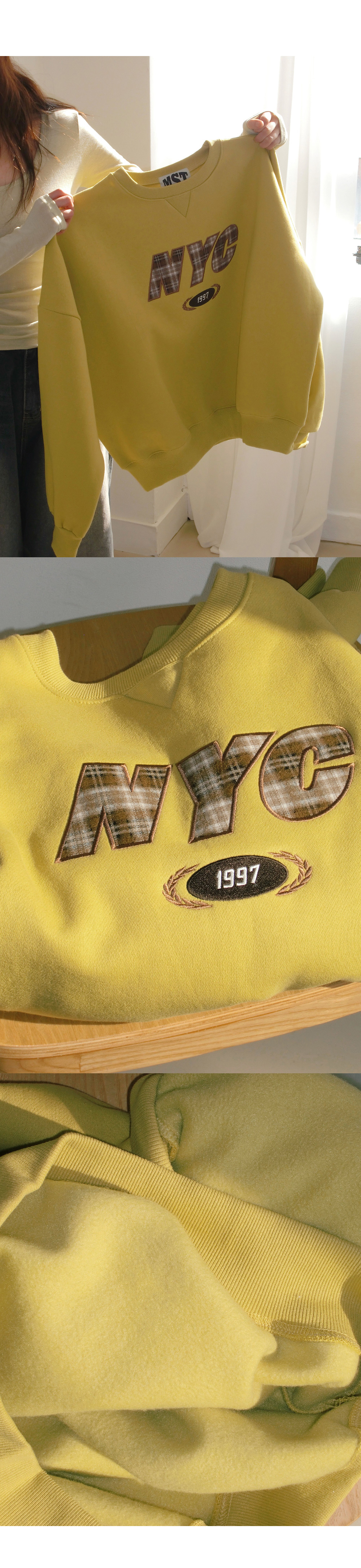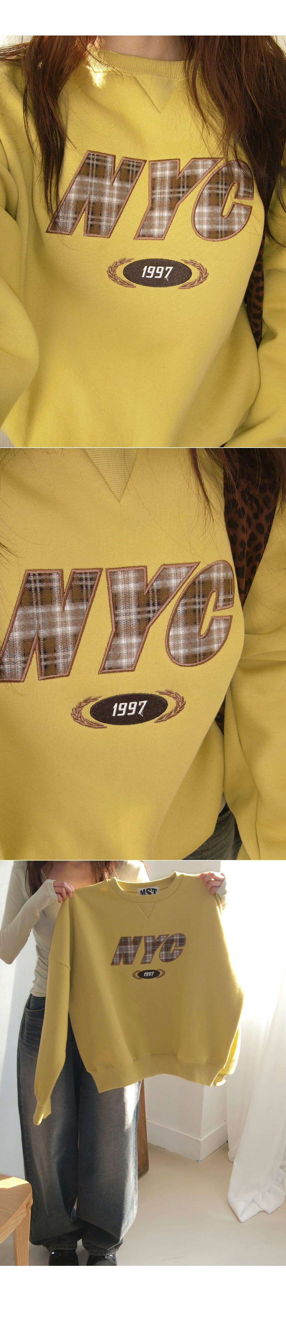 [MADE/오늘출발&무배]뉴욕시 체크자수 맨투맨 #기모맨투맨 #속기모 #기모상의 #오버핏맨투맨 #오버사이즈 #루즈핏 #기모상의 #기모티 #겨울맨투맨 #자수맨투맨