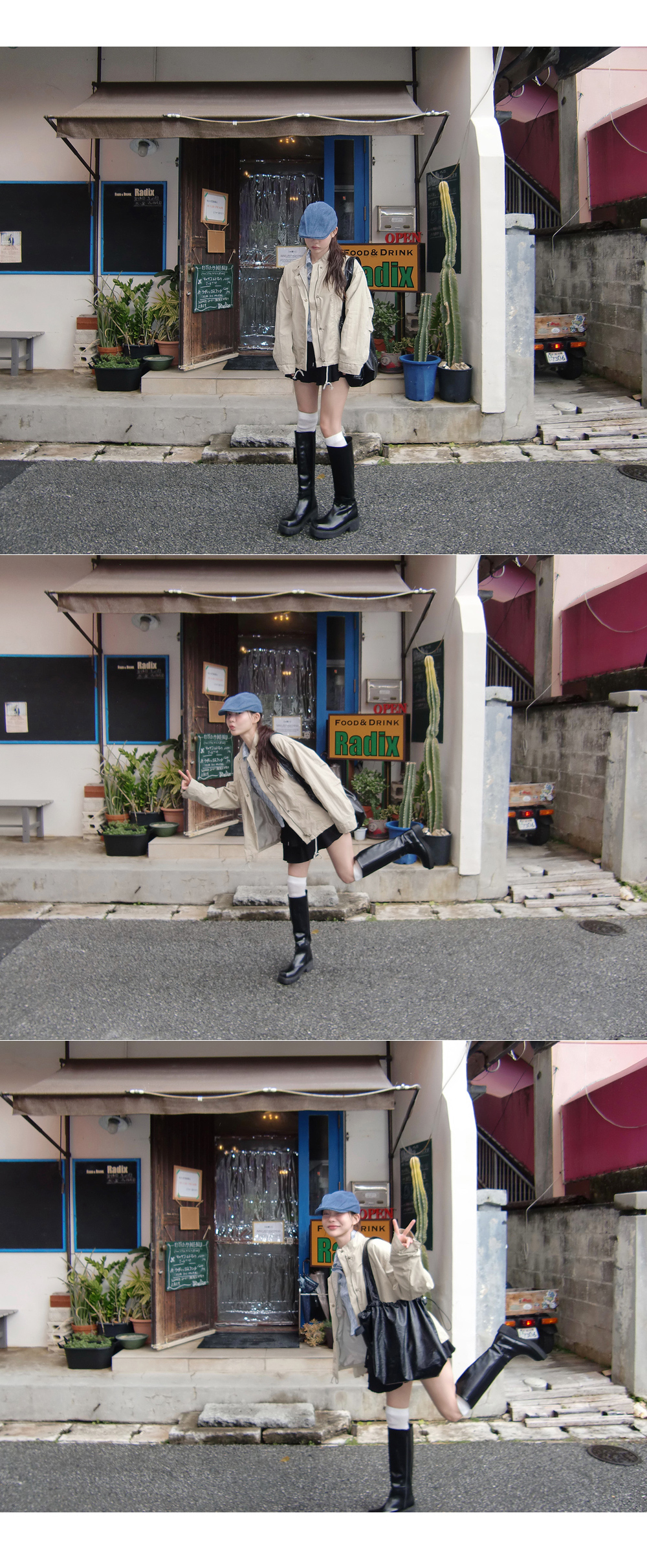 “골반은 평균이며 엉덩이가 작고 하의는 S사이즈를 입어요. 다리가 긴 편이라서 짧 은 기장감의 하의는 M사이즈도 입어요. 상의는 어깨가 있는 편이고 가슴사이즈는75C입니다.”