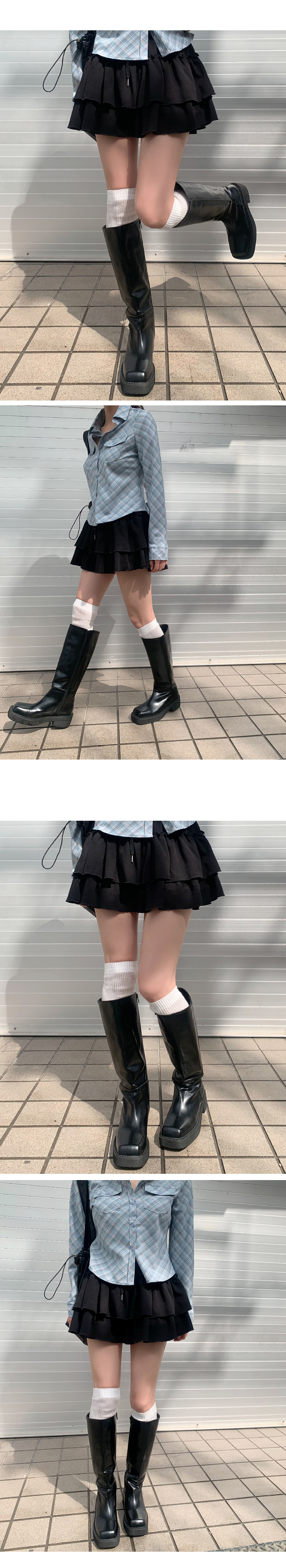 다양하게 코디하기 좋은 러블리한 무드의 알럽모코 캉캉 밴딩 미니스커트
