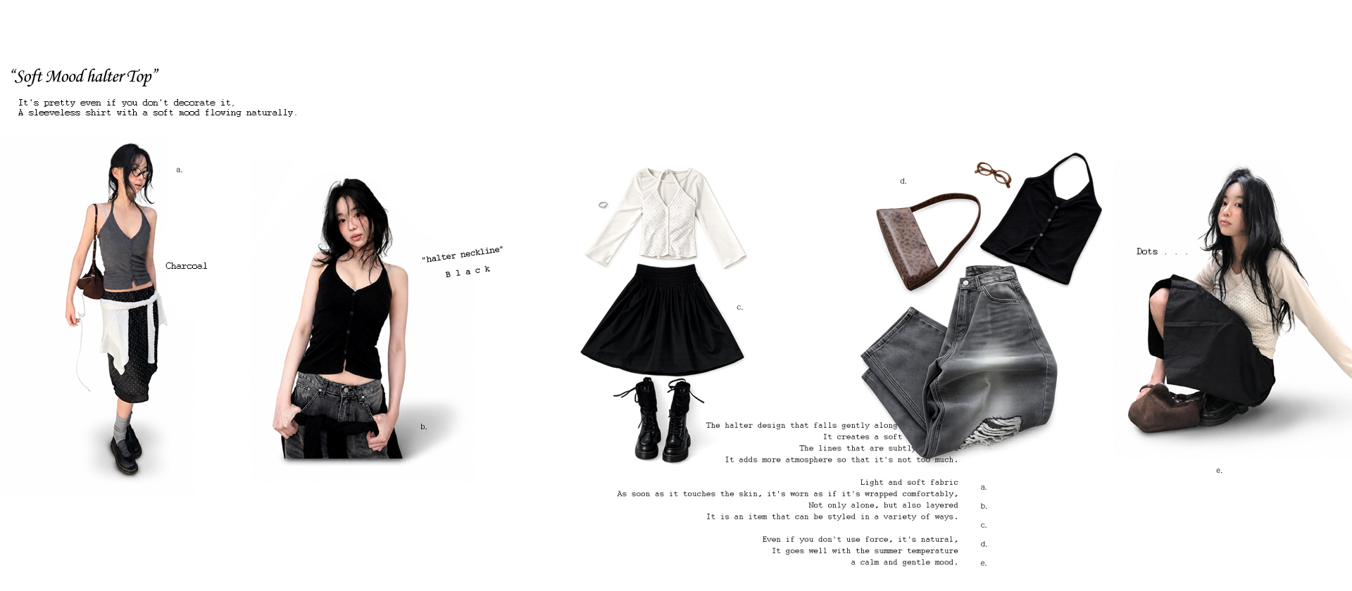 단독 또는 레이어드로 다양한 연출이 가능한 도트 슬림핏 홀터넥 나시