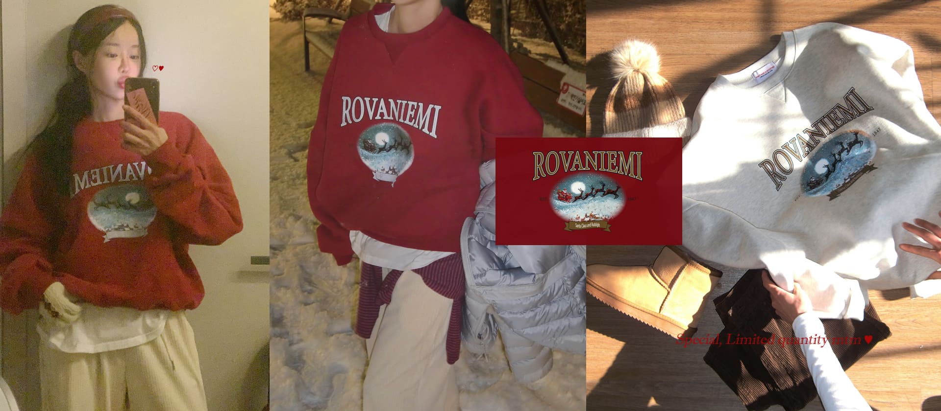 홀리데이 무드의 산타 프린팅 모코스트릿 양기모 맨투맨