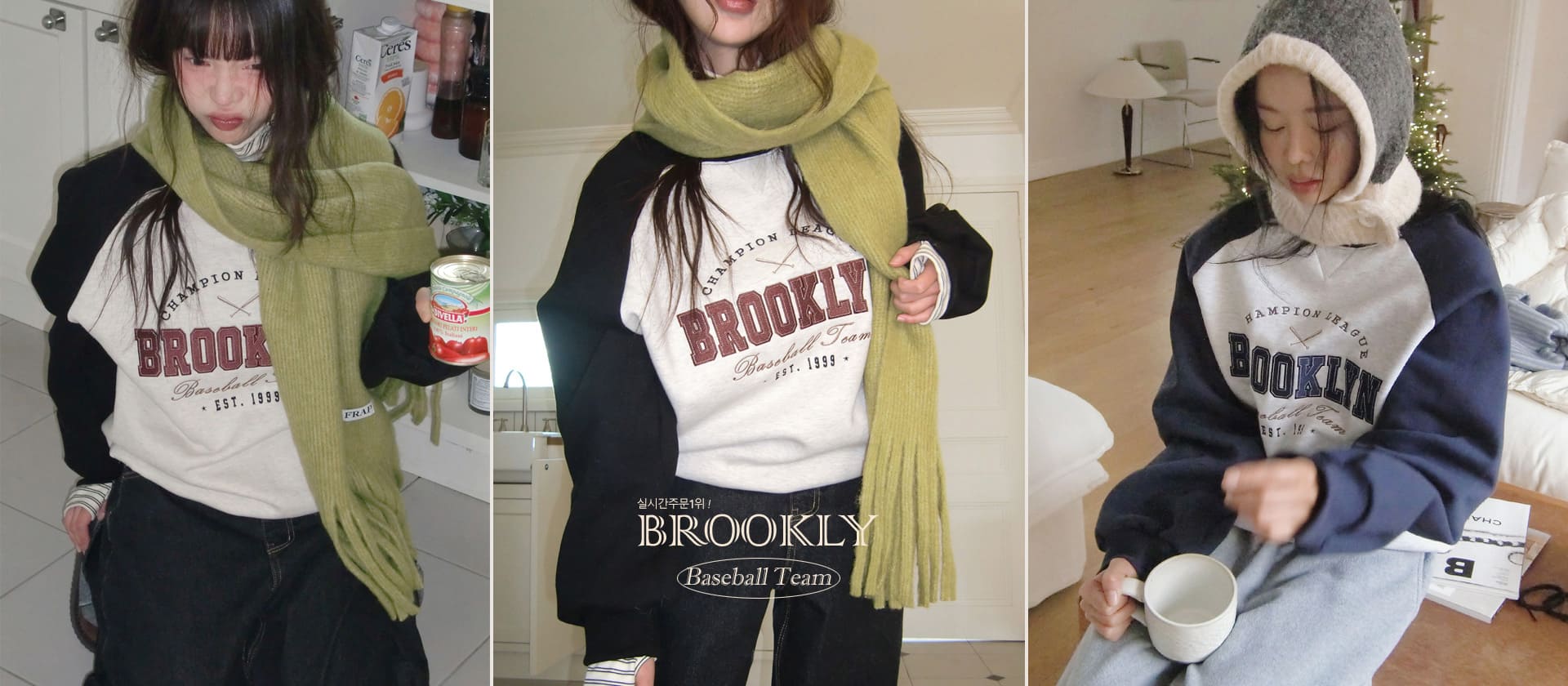 [MADE/오늘출발,무배]브클야구팀 자수 기모 레글런 맨투맨 #기모맨투맨 #배색맨투맨 #나그랑맨투맨 #오버핏맨투맨 #레글런맨투맨 #겨울상의 #데일리룩
