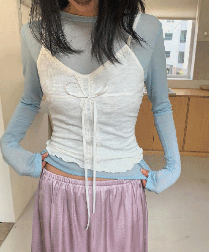 [[봄신상할인🌸]레이스 리본 끈나시 #브이넥나시 #끈나시 #레이스나시 #슬림핏나시 #봄옷]상품문의