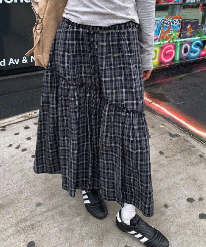 [체크 프릴 밴딩 롱스커트 #체크스커트 #밴딩스커트 #스트랩스커트 #롱스커트]기타문의