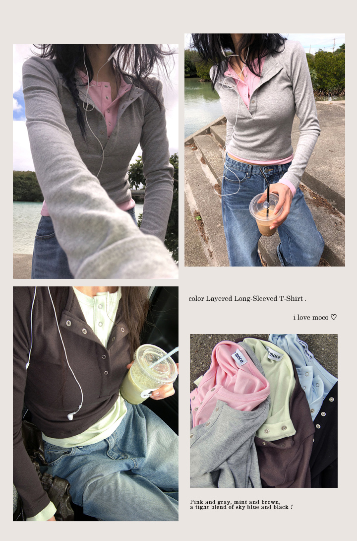 [재진행✨MADE/당일무배🚀]골지 유넥 단추 티셔츠 #골지티 #단추티 #유넥티 #스퀘어넥 #이너티 #긴팔티 #버튼티 #티셔츠 #슬림핏 #봄옷
