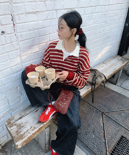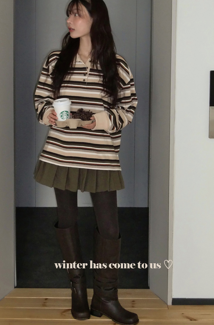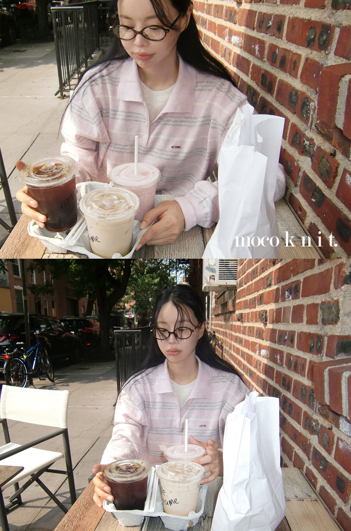 [오늘출발]버튼 카라 단가라 니트 #카라니트 #단가라니트 #버튼니트 #긴팔니트 #가을니트 #오버핏니트 #스트라이프니트