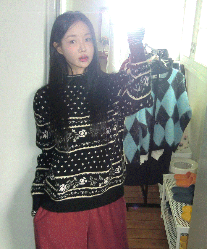 [MADE/오늘출발]노르딕루돌프니트 #노르딕니트 #눈꽃니트 #오버핏 #울니트 #삿포로코디