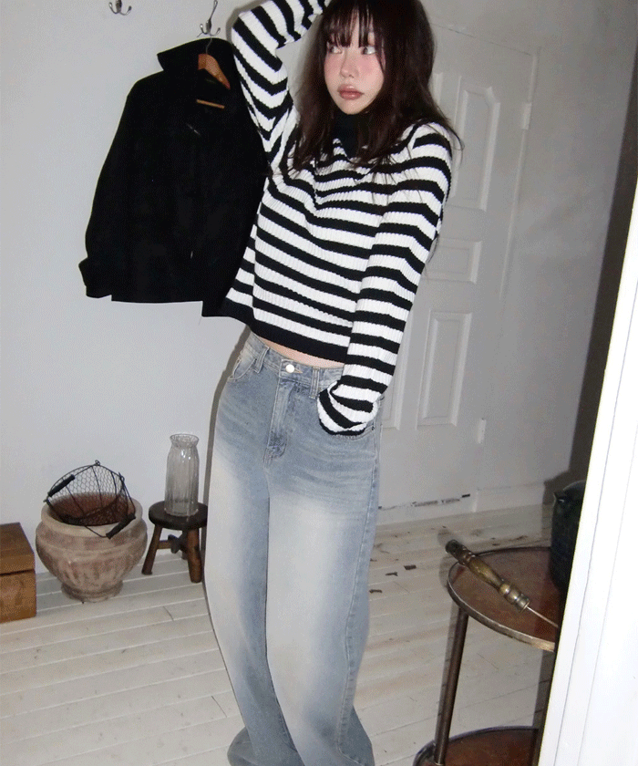 [신상5%]홀가 스트라이프 니트 #폴라니트 #슬림핏니트 #단가라니트 #골지니트 #홀가먼트