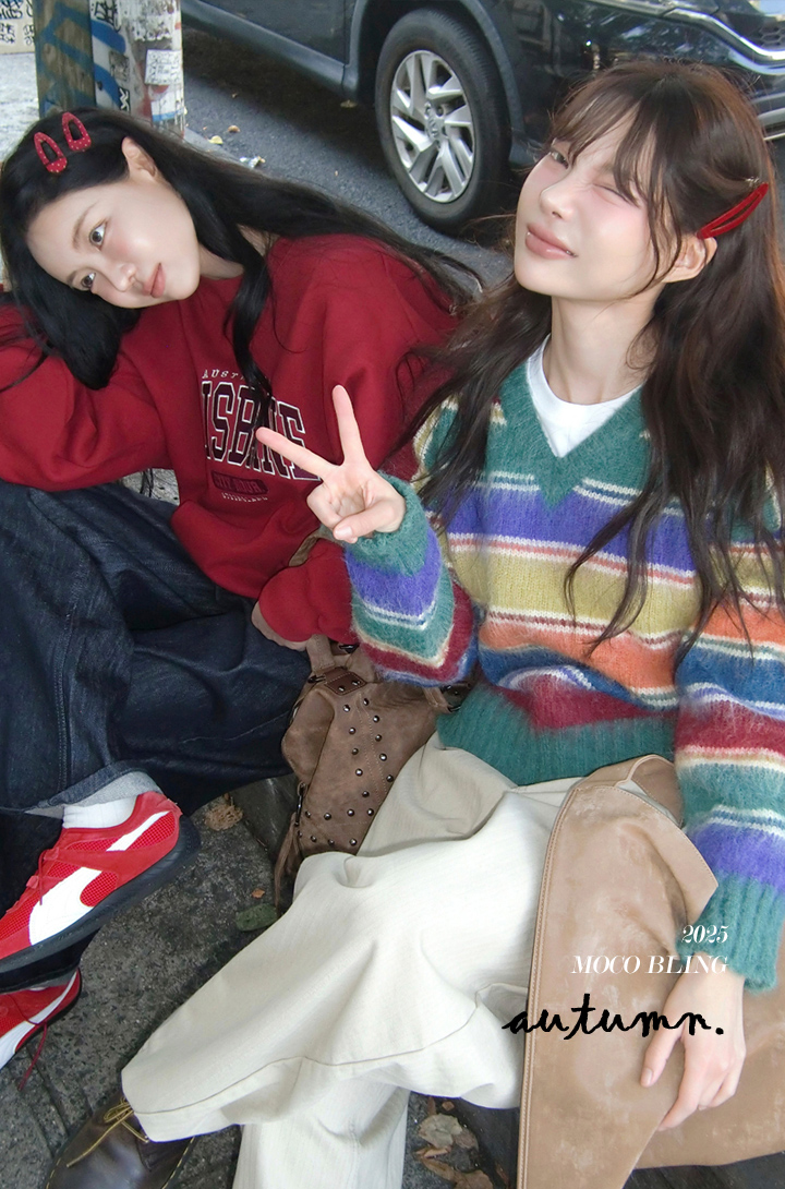 [신상5%]브이넥 단가라 니트 #카라니트 #단가라니트 #브이넥니트 #스트라이프니트 #배색니트 #겨울니트