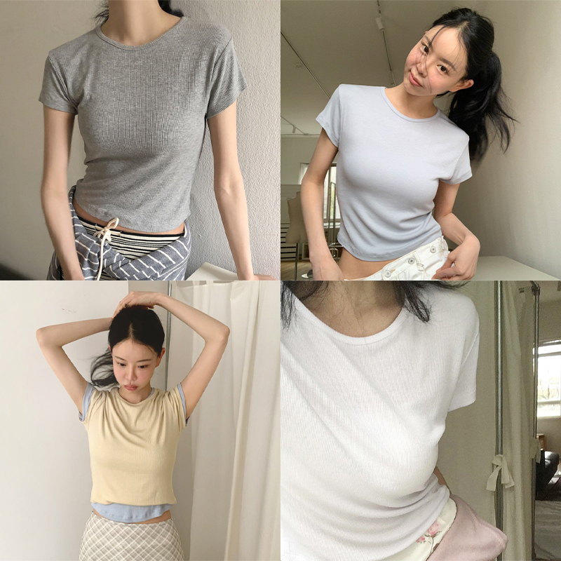 63626 [MADE/당일무배🚀]에어리 골지 반팔티 #5컬러 #기본티 #이너티 #골지티 #슬림핏 #봄신상 18000