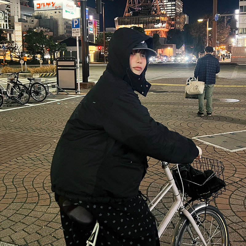# 리버시블 디자인의 후드 스트링 패딩