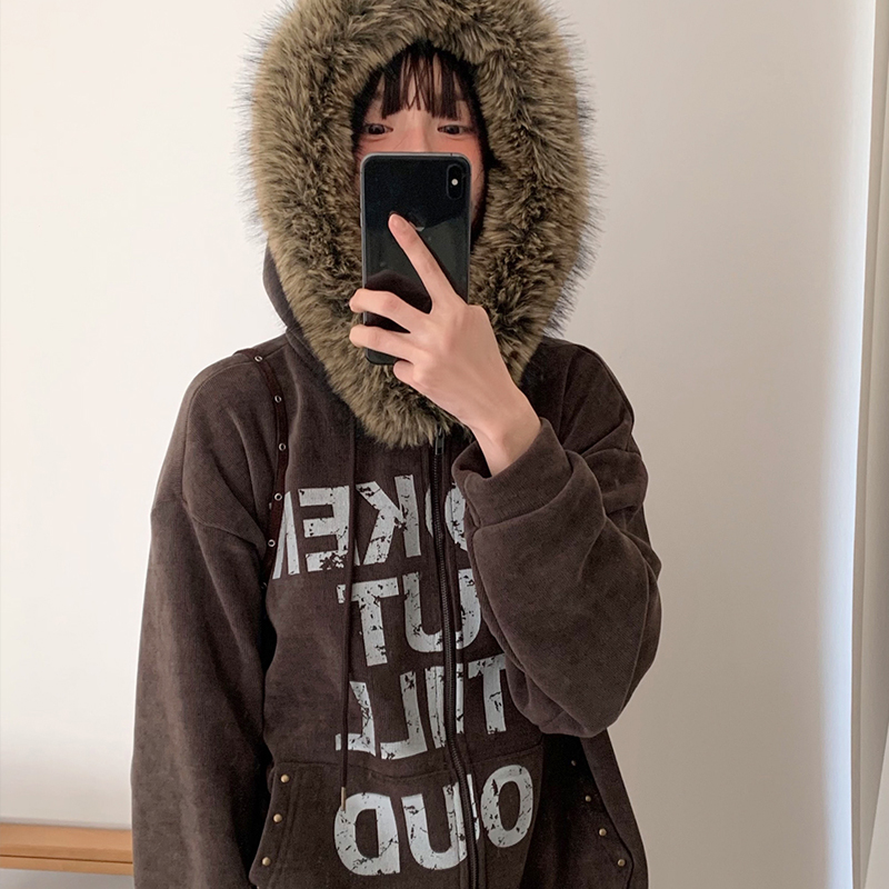 # 영문레터링과 후드퍼가 포인트가 되는 투웨이 집업