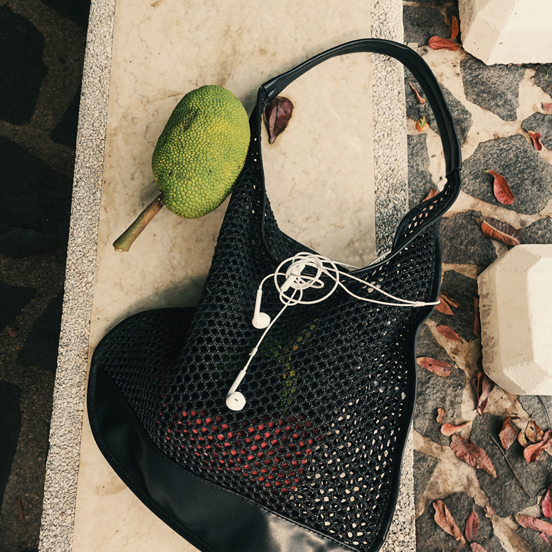 썸머 무드 가득한 그물 짜임 라운드 숄더백