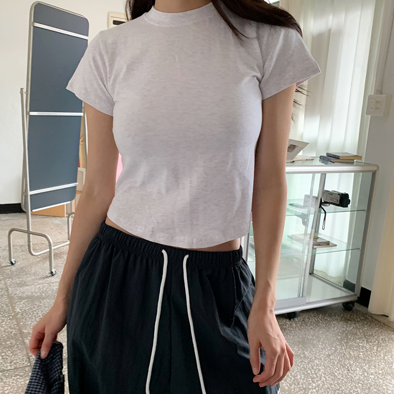 # 영문 자수로 포인트를 준 슬림핏 반팔티