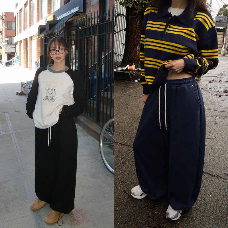 하트리벳으로 포인트를 준 벌룬&핀턱 디자인의 오버핏 스웻팬츠. 어디에나 편안하게 멋스럽게 입기 좋은 데일리 아이템!