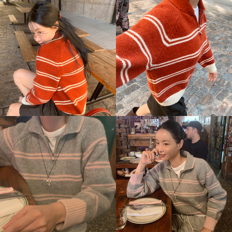 # 단가라 패턴의 카라 니트