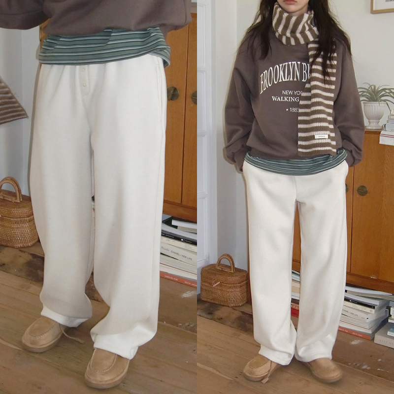 # 버튼으로 포인트를 준 밴딩 기모 팬츠