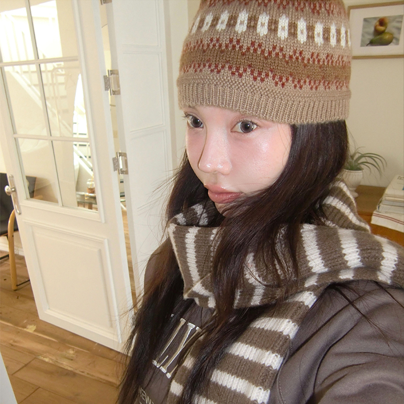 노르딕 패턴으로 포인트를 준 니트 비니, 겨울 포인트템으로 추천!