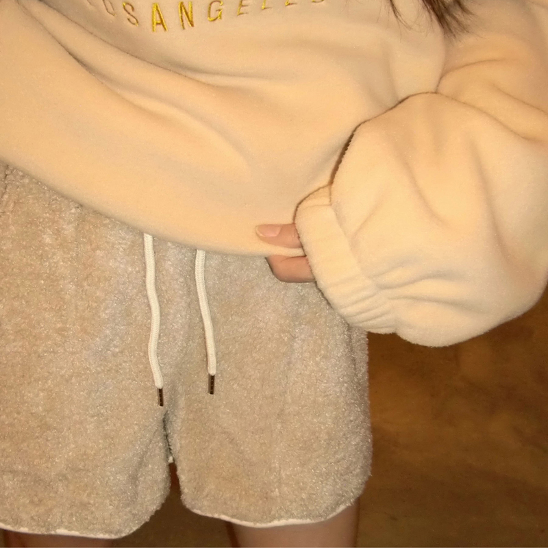 # 귀여운 무드의 양털 밴딩 스트랩 숏팬츠