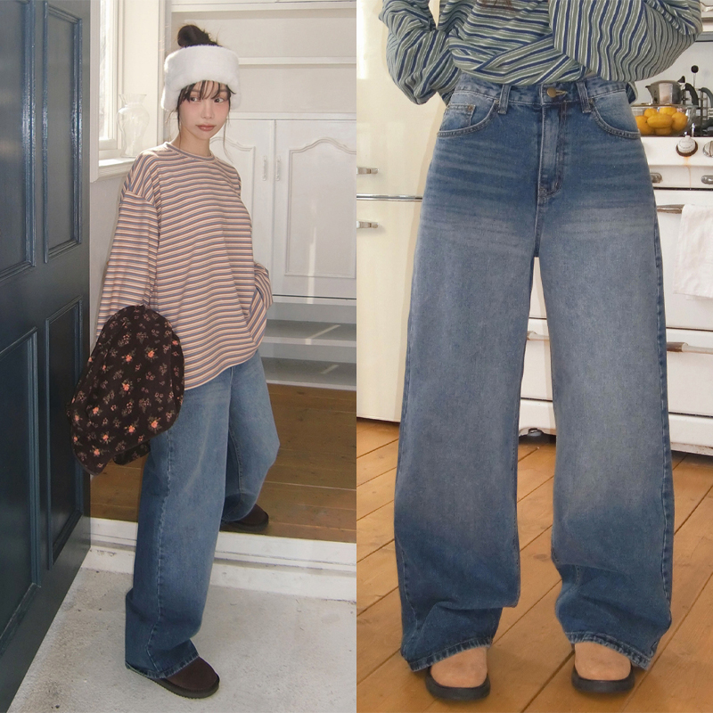 # 은은한 워싱감의 데일리로 입기 좋은 와이드 데님팬츠