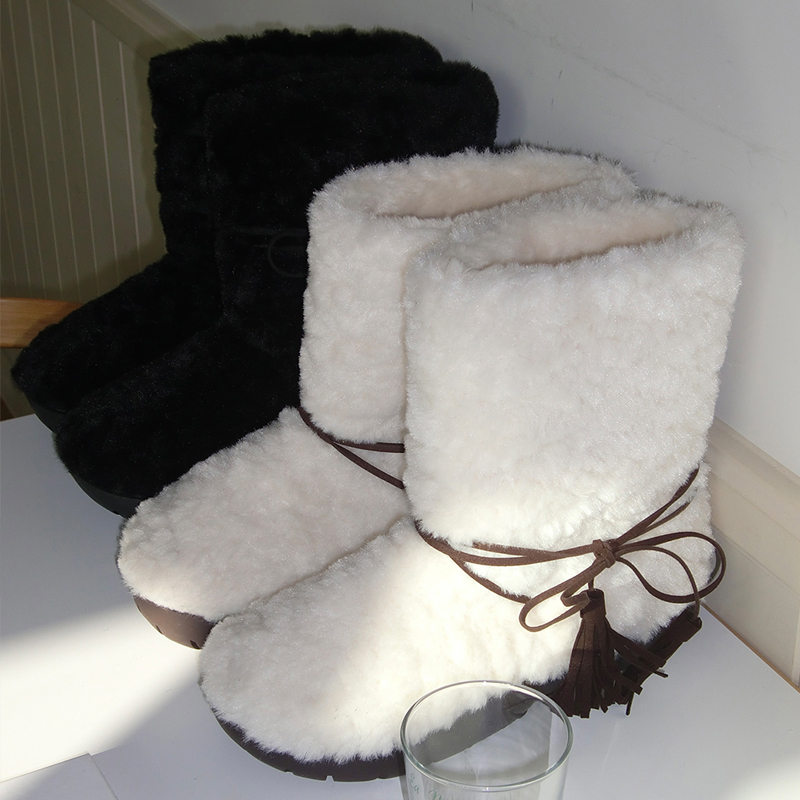 태슬 장식으로 포인트를 준 퍼 부츠